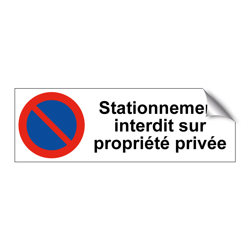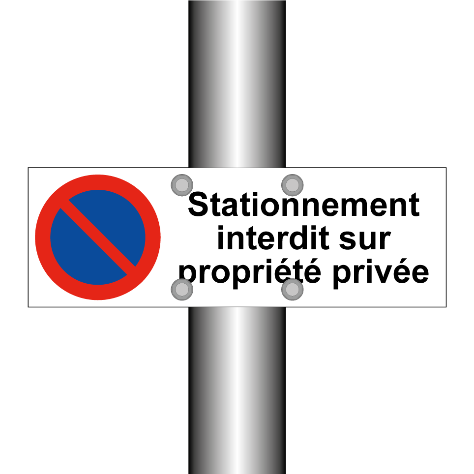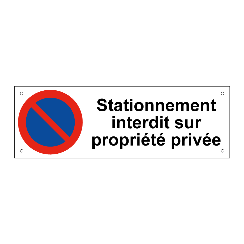 Panneau d'interdiction de stationner avec le texte : "Stationnement interdit sur propriété privée" et une symbolique claire.