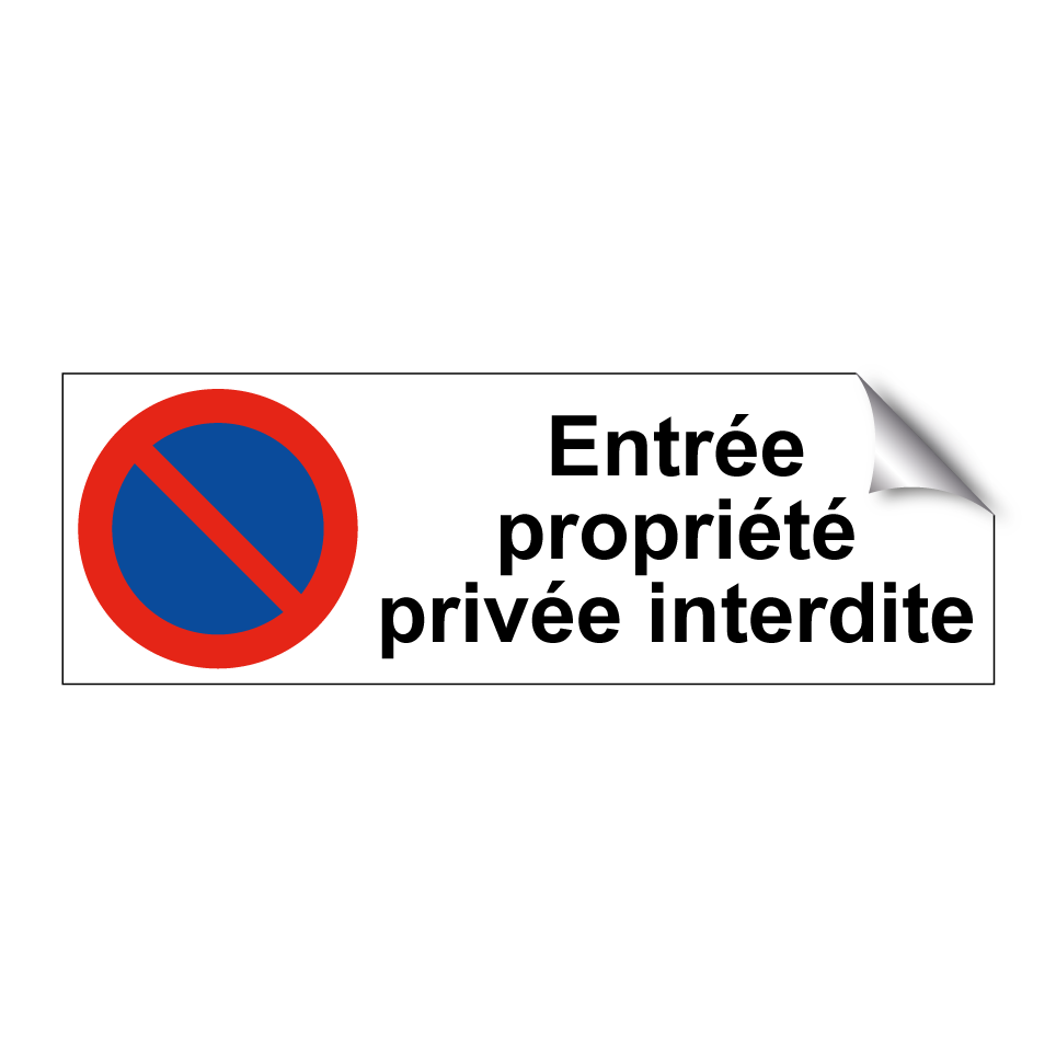 Panneau d'interdiction de stationner avec le texte : "Entrée propriété privée interdite" et une symbolique claire.