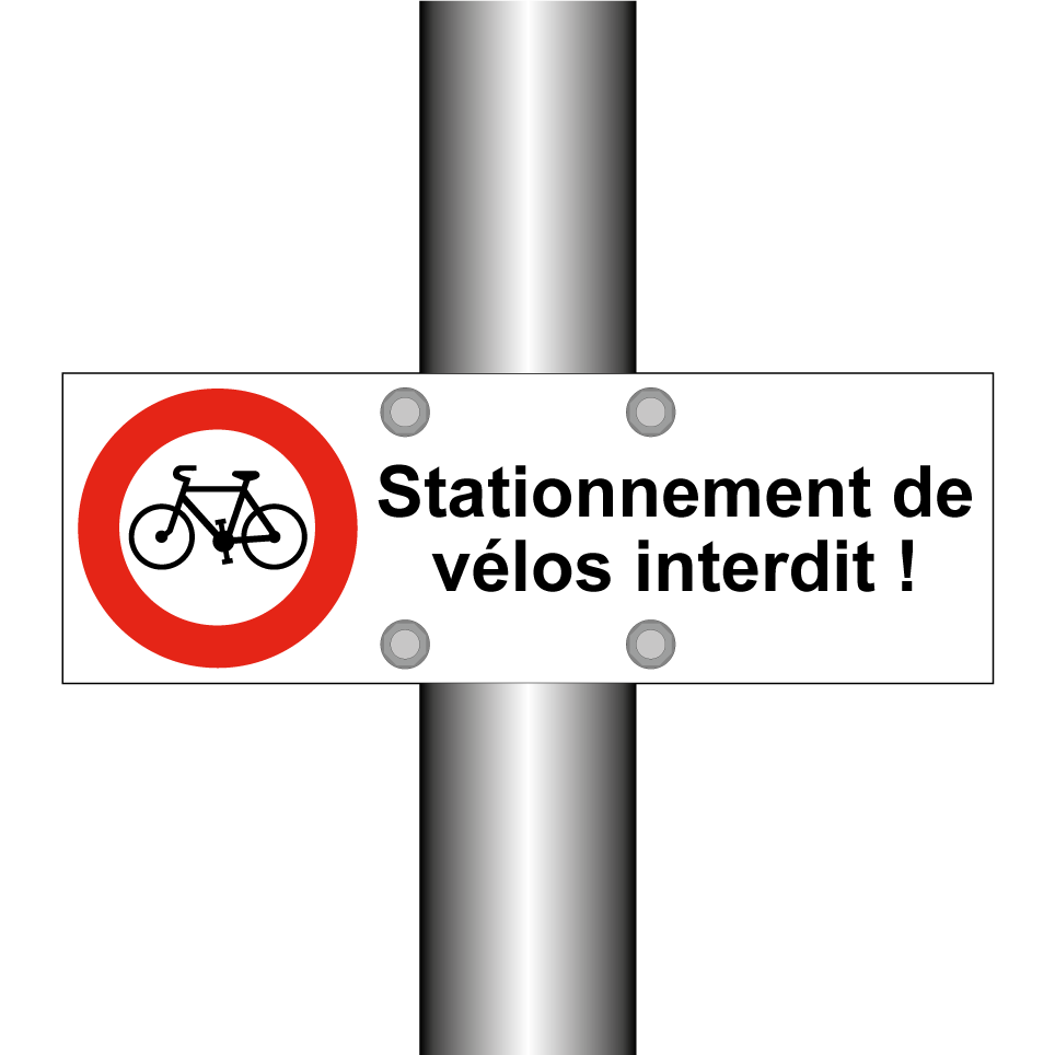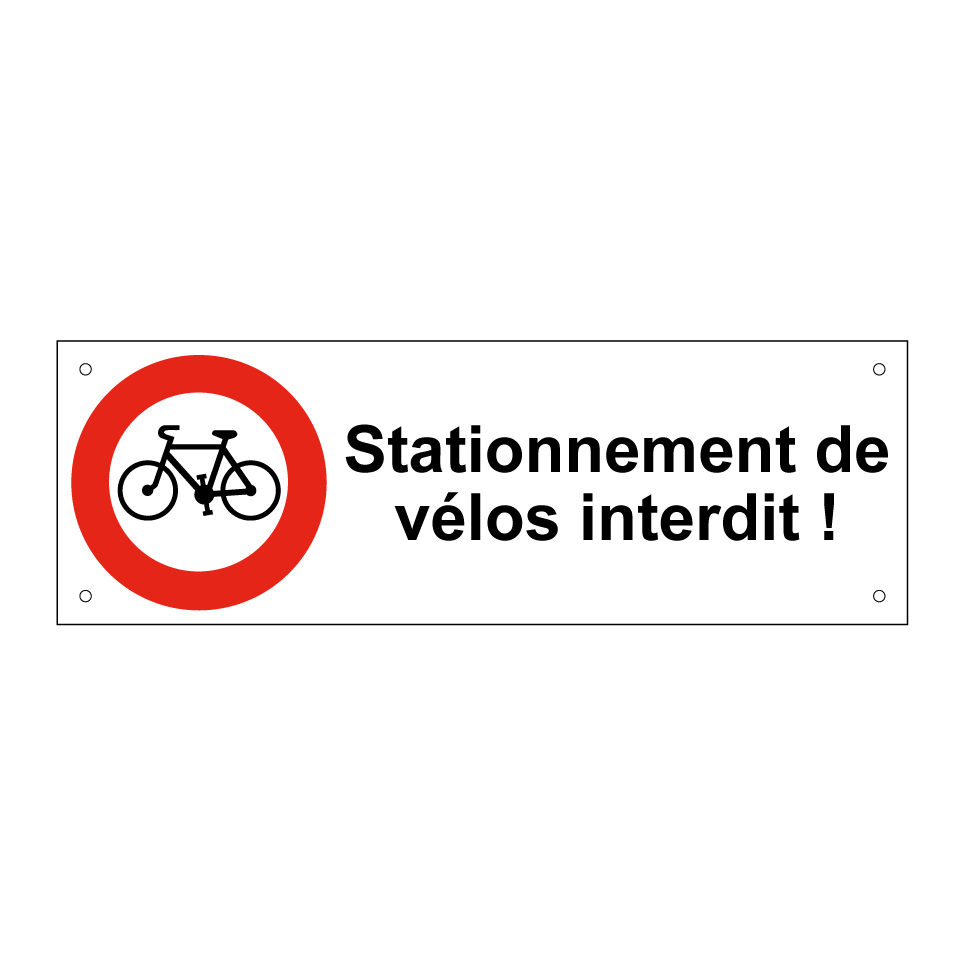 Panneau d'interdiction de stationner avec le texte : "Stationnement de vélos interdit !" et une symbolique claire.