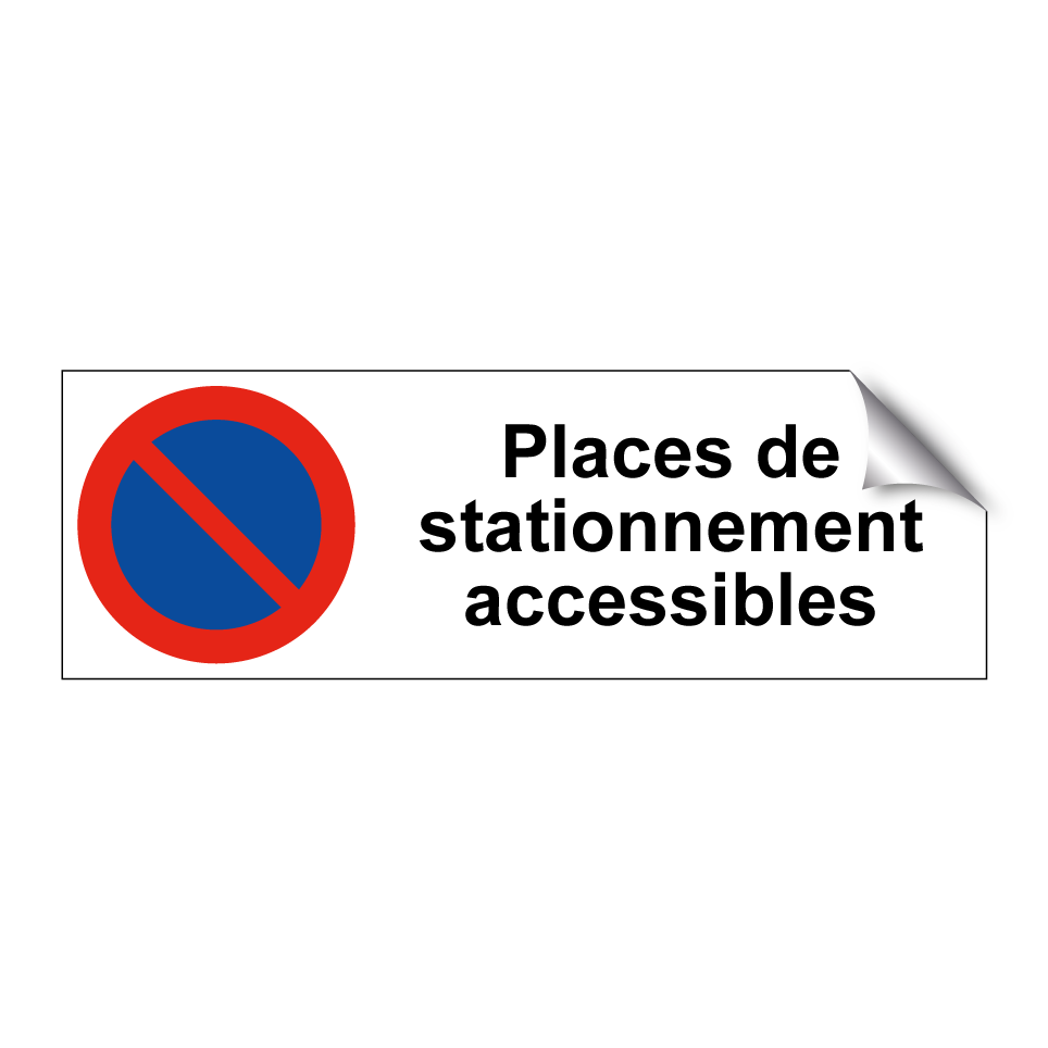 Panneau d'interdiction de stationner avec le texte : "Places de stationnement accessibles" et une symbolique claire.