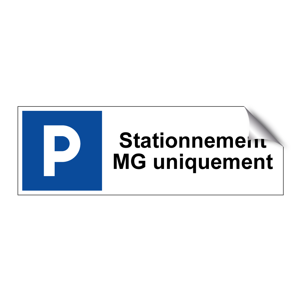 Panneau de stationnement avec le texte : "Stationnement MG uniquement" et une symbolique claire.