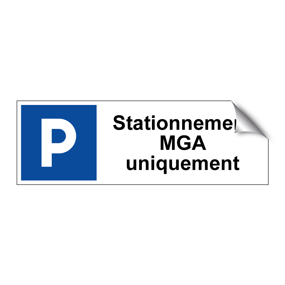Panneau de stationnement avec le texte : "Stationnement MGA uniquement" et une symbolique claire.