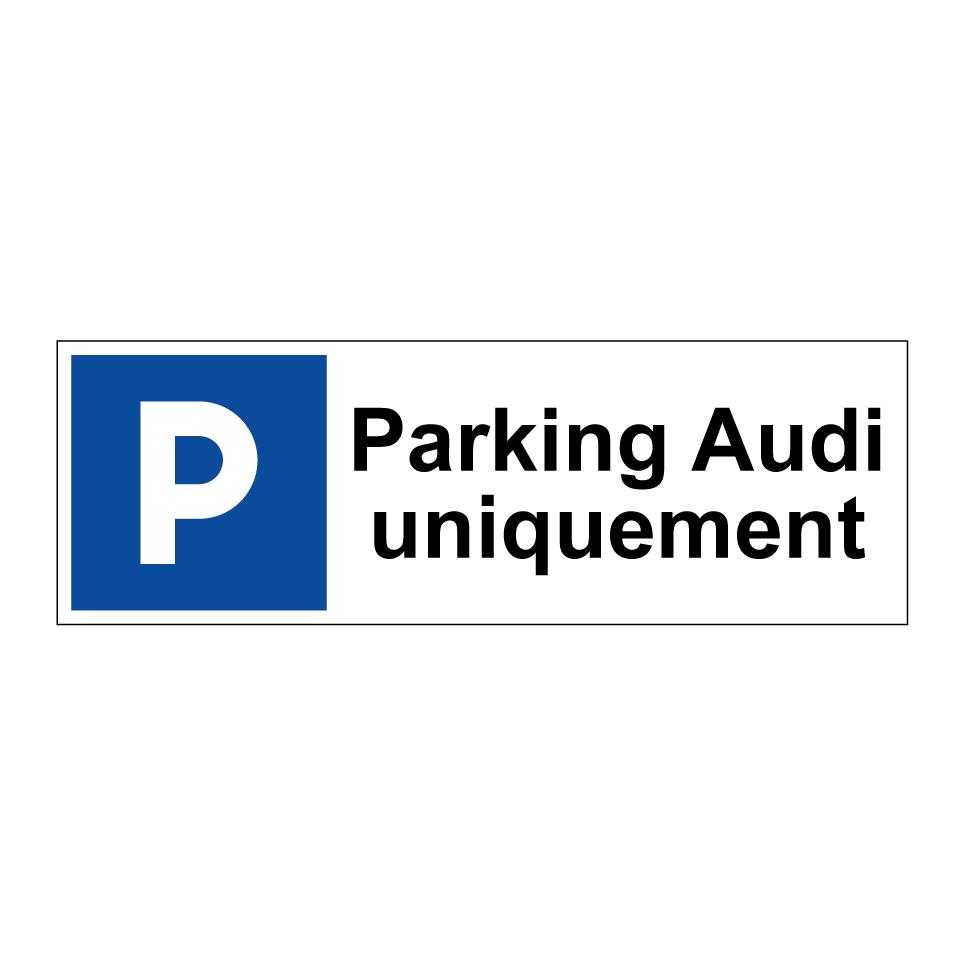Panneau de stationnement avec le texte : "Parking Audi uniquement" et une symbolique claire.