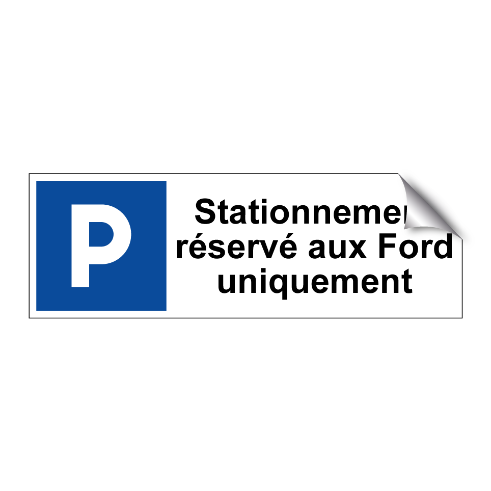 Panneau de stationnement avec le texte : "Stationnement réservé aux Ford uniquement" et une symbolique claire.