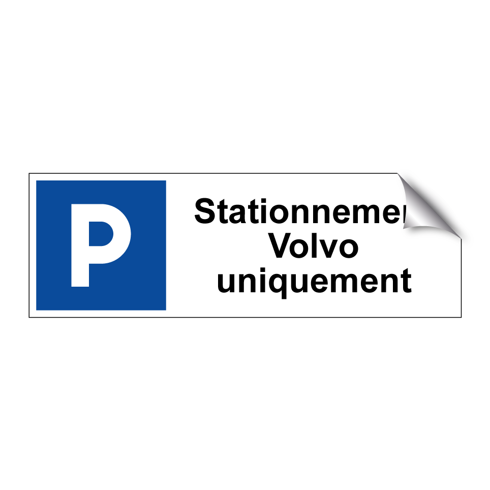 Panneau de stationnement avec le texte : "Stationnement Volvo uniquement" et une symbolique claire.