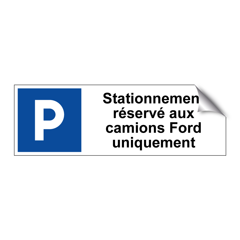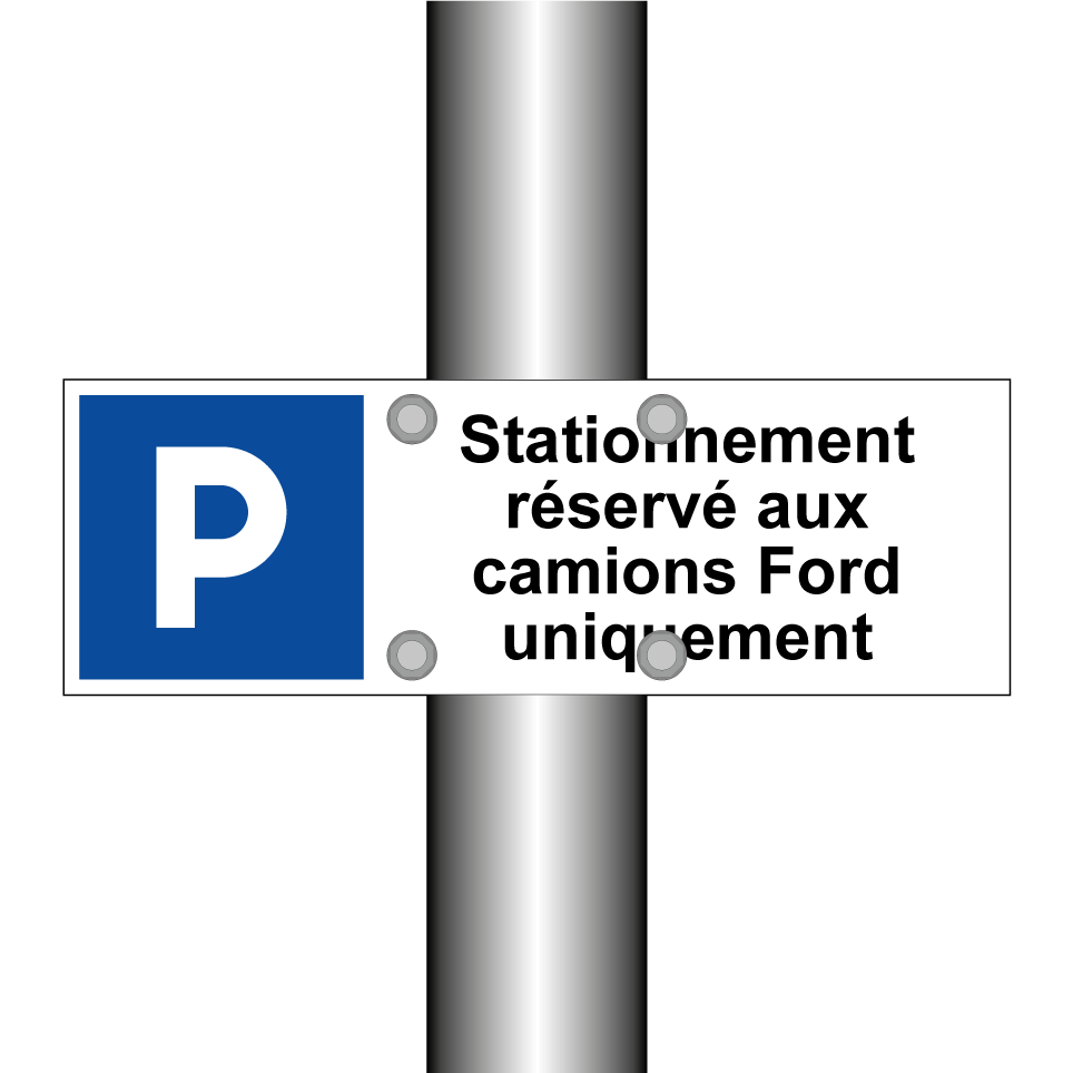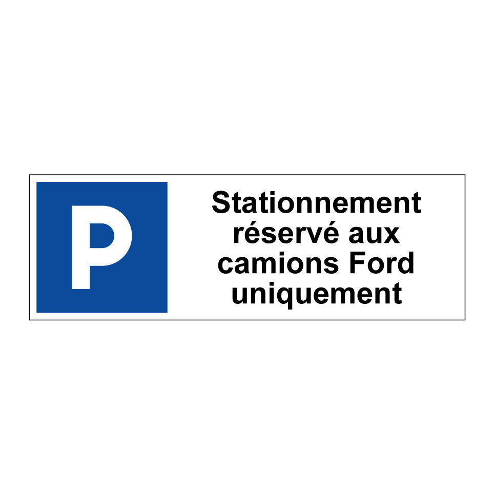 Panneau de stationnement avec le texte : "Stationnement réservé aux camions Ford uniquement" et une symbolique claire.