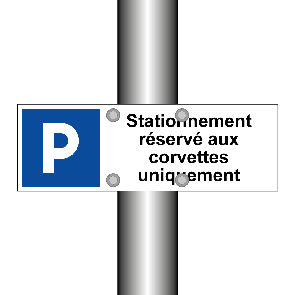 Panneau de stationnement avec le texte : "Stationnement réservé aux corvettes uniquement" et une symbolique claire.