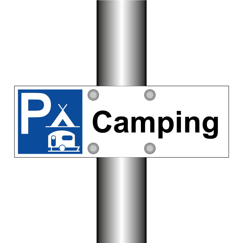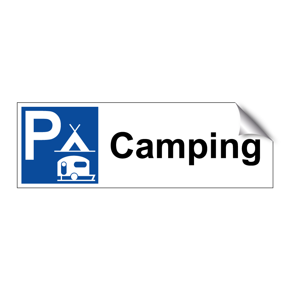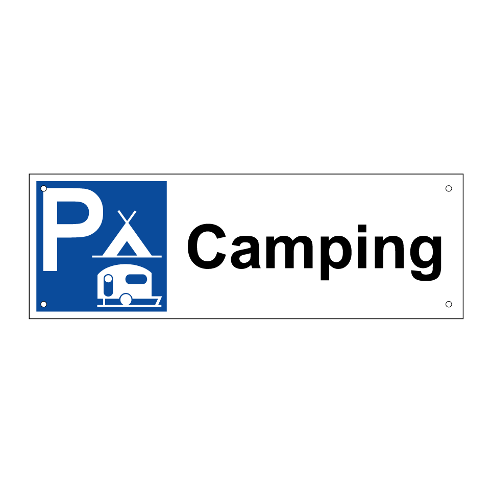 Panneau de stationnement avec le texte : "Camping" et une symbolique claire.