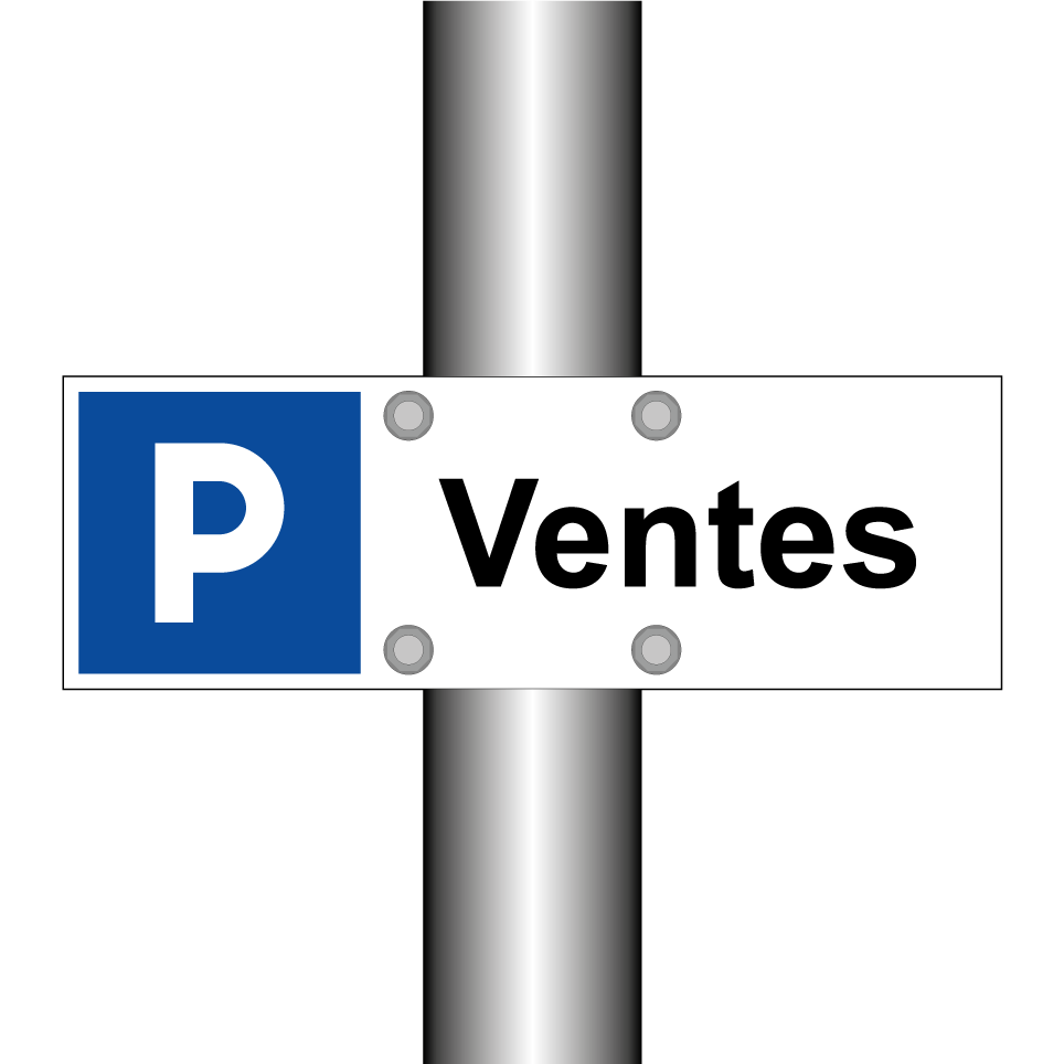 Panneau de stationnement avec le texte : "Ventes" et une symbolique claire.