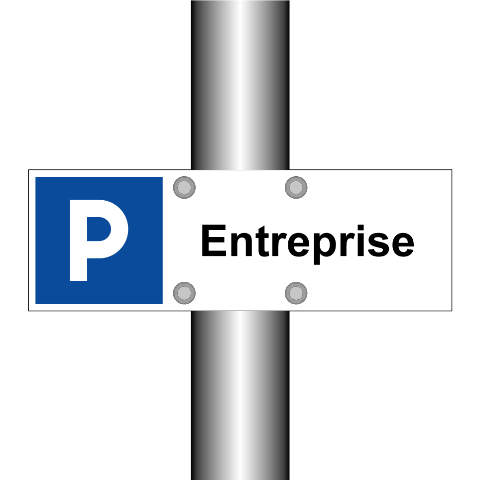 Panneau de stationnement avec le texte : "Entreprise" et une symbolique claire.