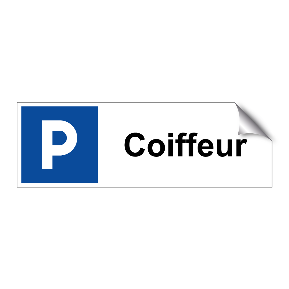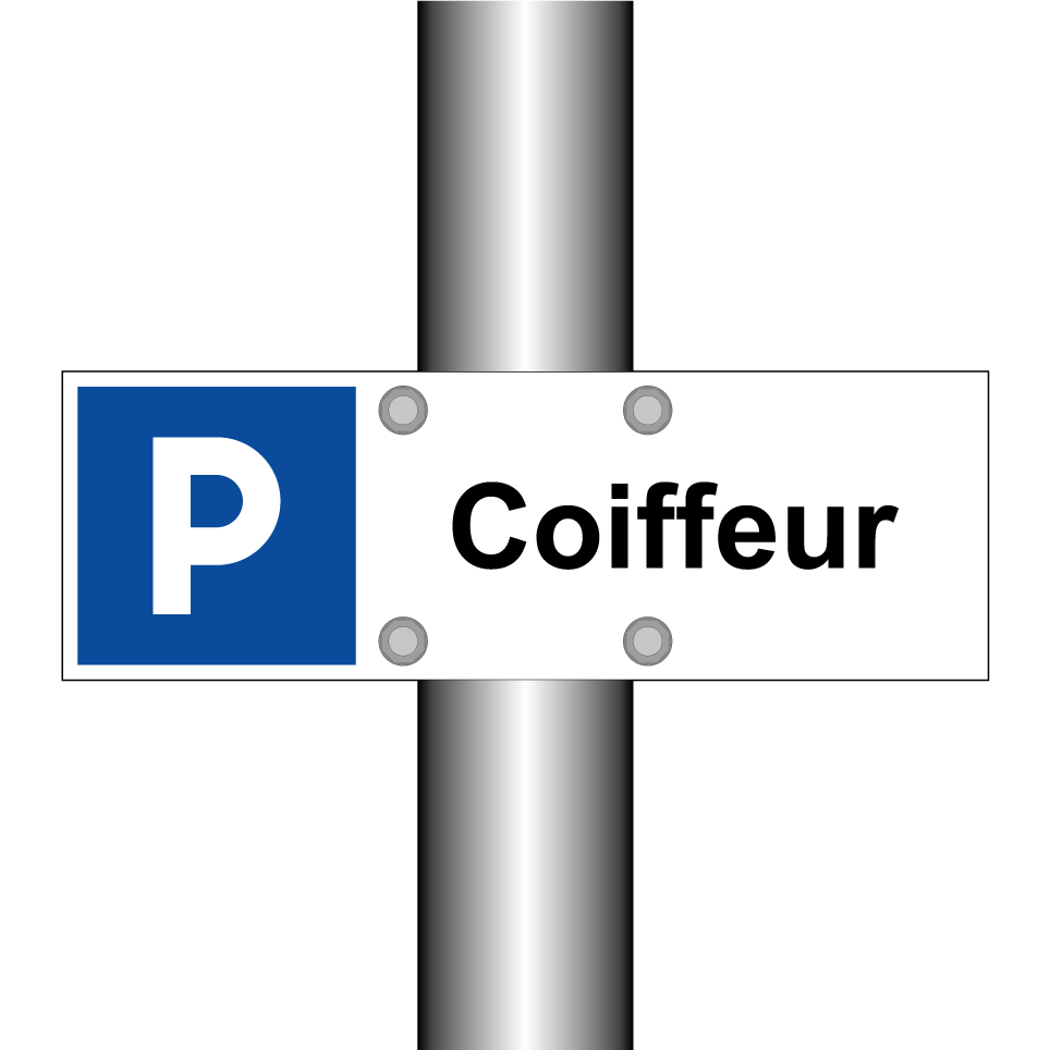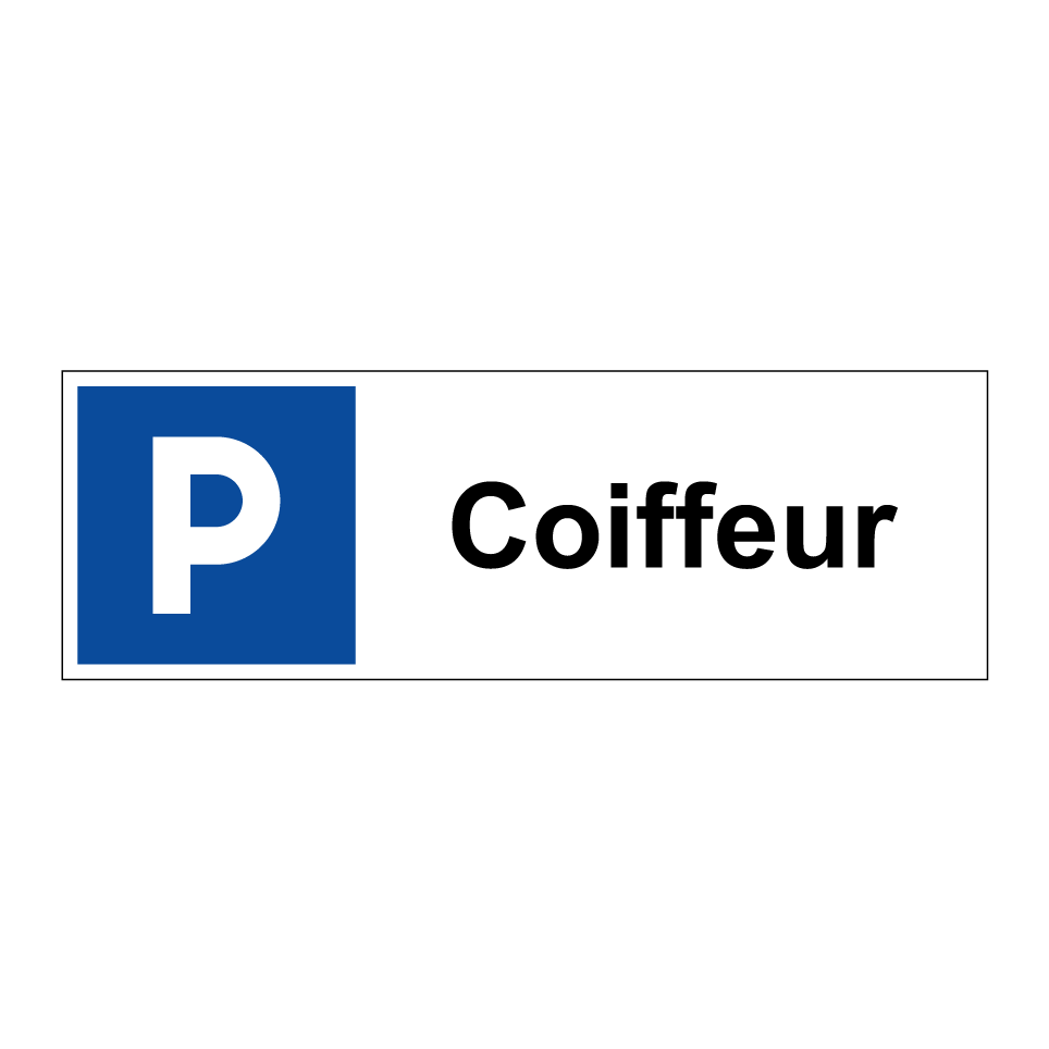 Panneau de stationnement avec le texte : "Coiffeur" et une symbolique claire.