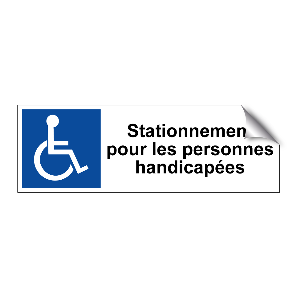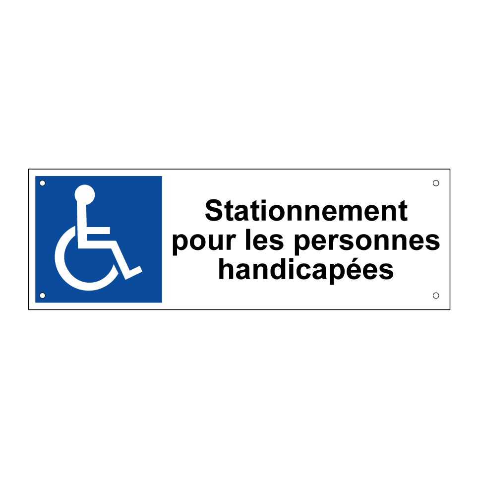 Panneau de stationnement avec le texte : "Stationnement pour les personnes handicapées" et une symbolique claire.