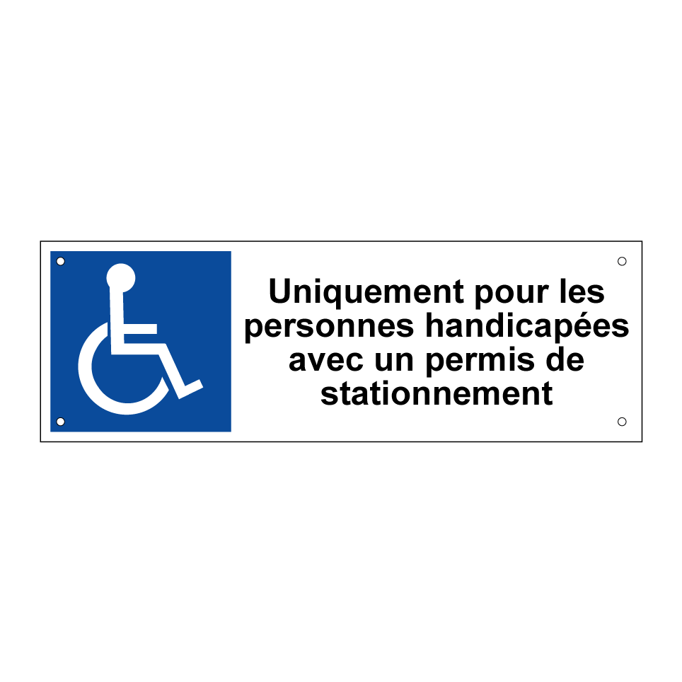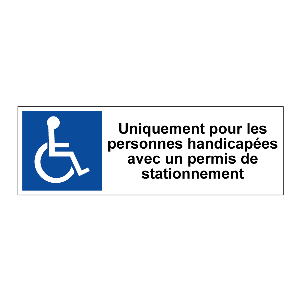 Panneau de stationnement avec le texte : "Uniquement pour les personnes handicapées avec un permis de stationnement" et une symbolique claire.