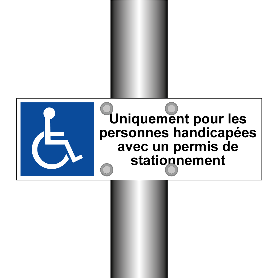 Ce panneau de stationnement réservé est idéal pour les zones de stationnement dédiées aux personnes handicapées. Il peut être installé dans les parkings publics, privés ou d'entreprise pour garantir un accès facile et sécurisé. Grâce à sa conception claire avec un fond blanc et une écriture noire, il est facilement visible et compréhensible. Ce panneau assure le respect des droits des personnes à mobilité réduite en indiquant clairement les emplacements qui leur sont réservés.