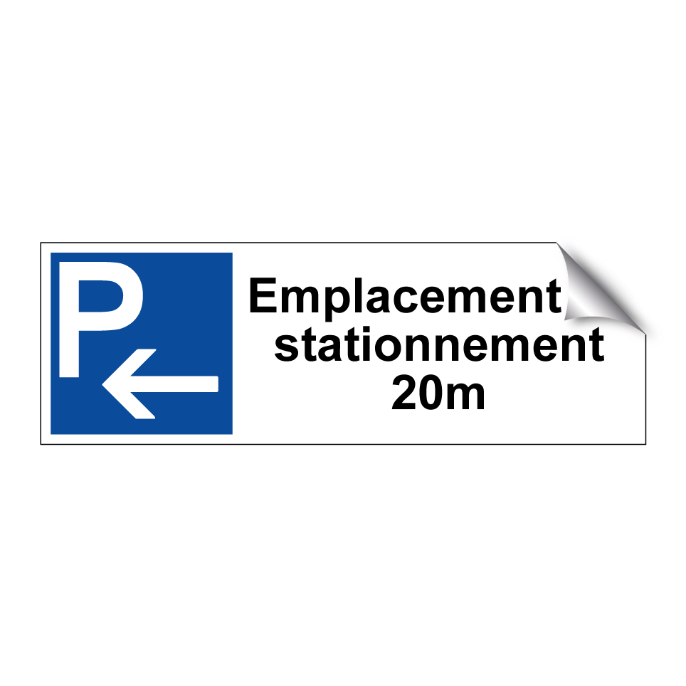 Panneau de stationnement avec le texte : "Emplacement de stationnement 20m" et une symbolique claire.