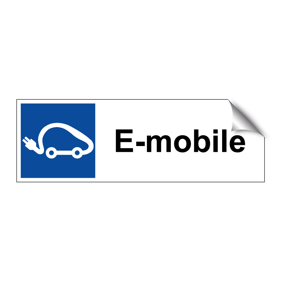 Panneau de stationnement avec le texte : "E-mobile" et une symbolique claire.