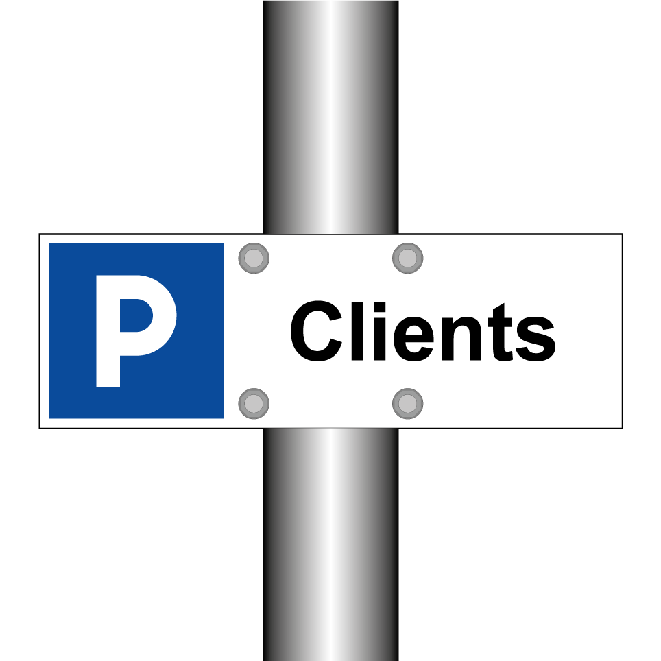 Panneau de stationnement avec le texte : "Clients" et une symbolique claire.