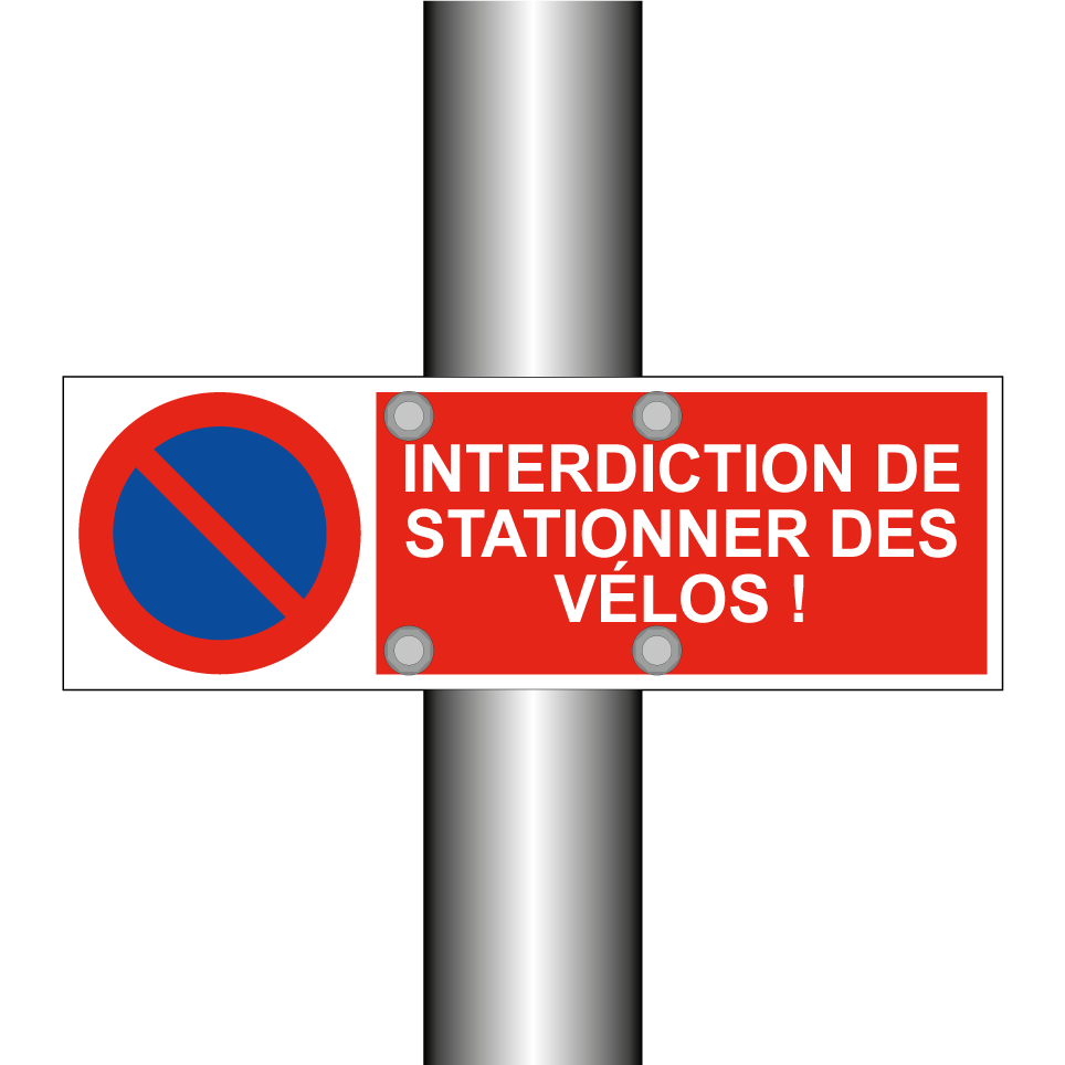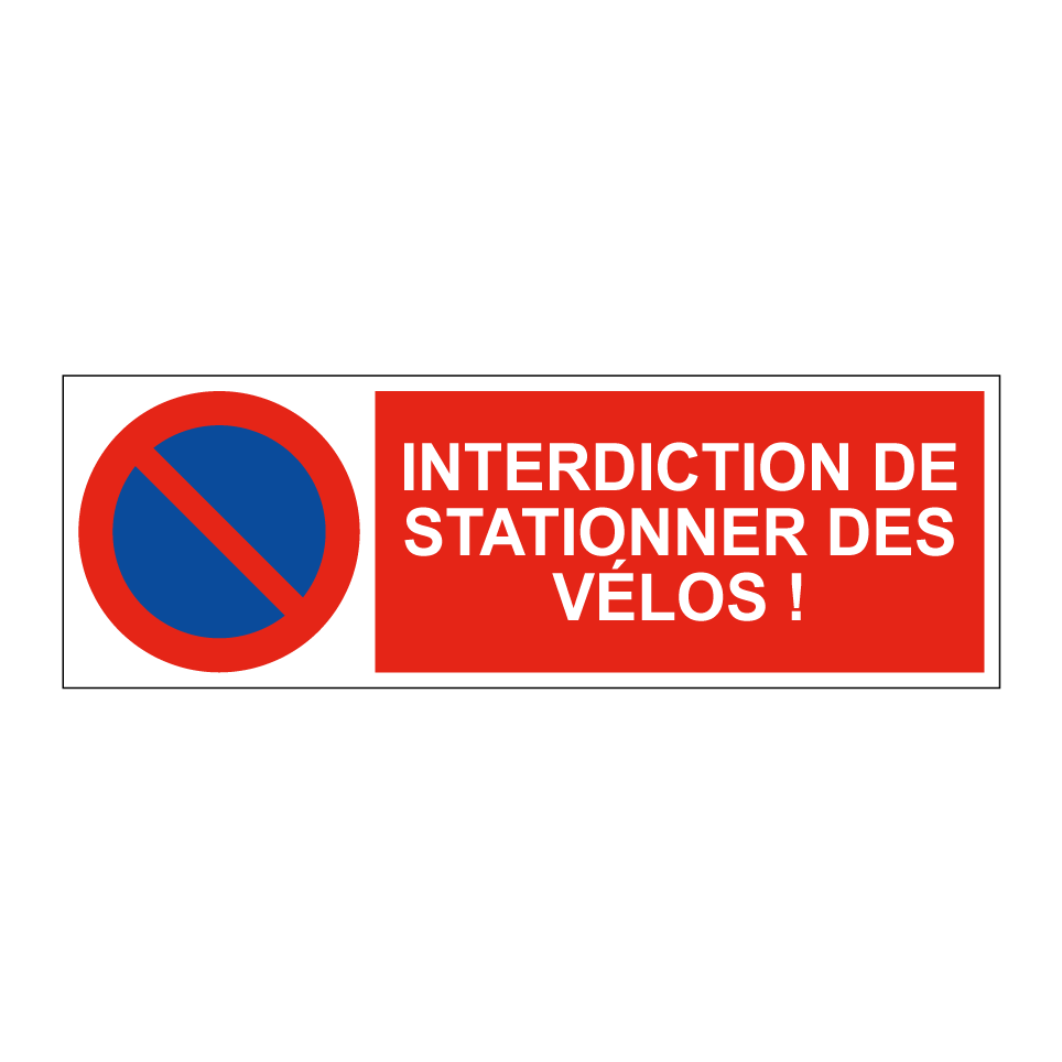 Panneau d'interdiction de stationner avec le texte : "Interdiction de stationner des vélos !" et une symbolique claire.