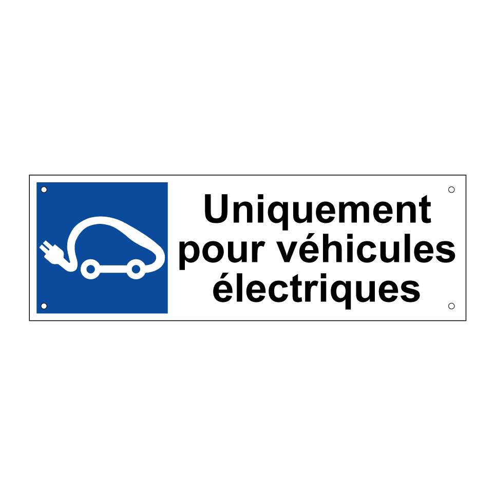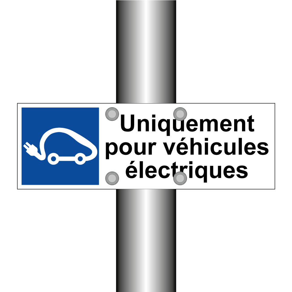Panneau de stationnement avec le texte : "Uniquement pour véhicules électriques" et une symbolique claire.