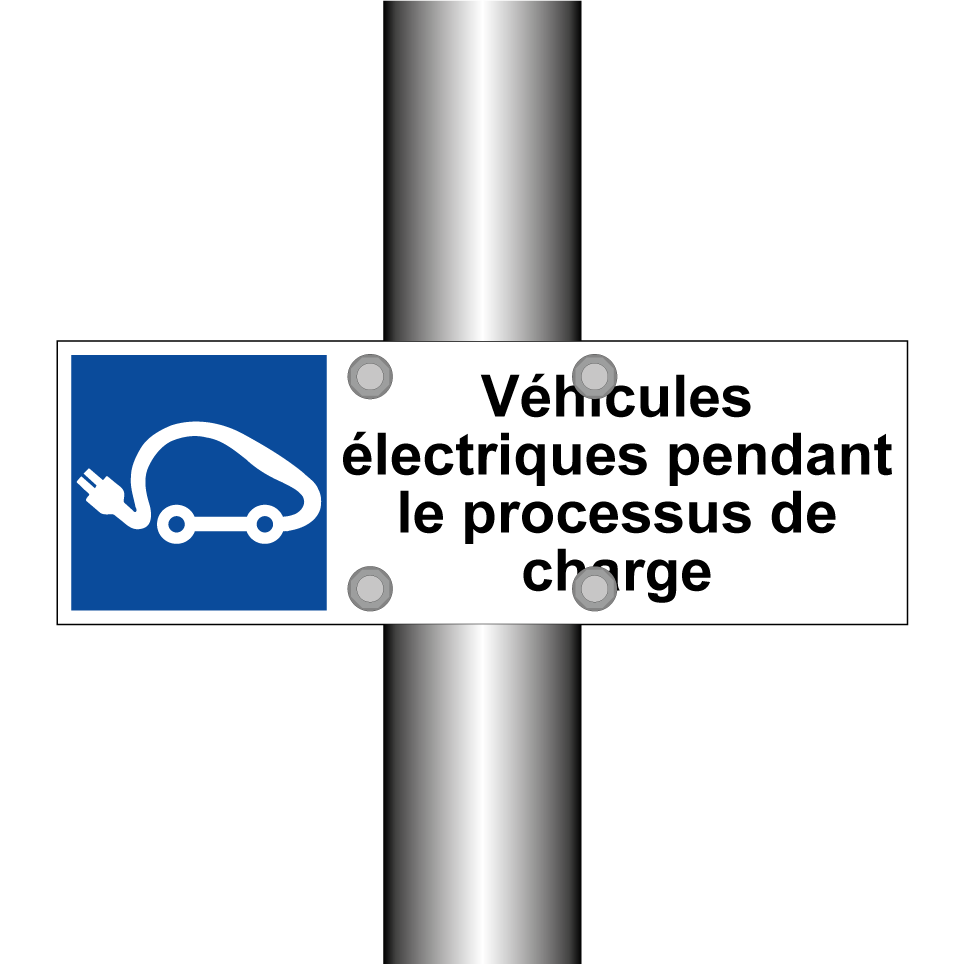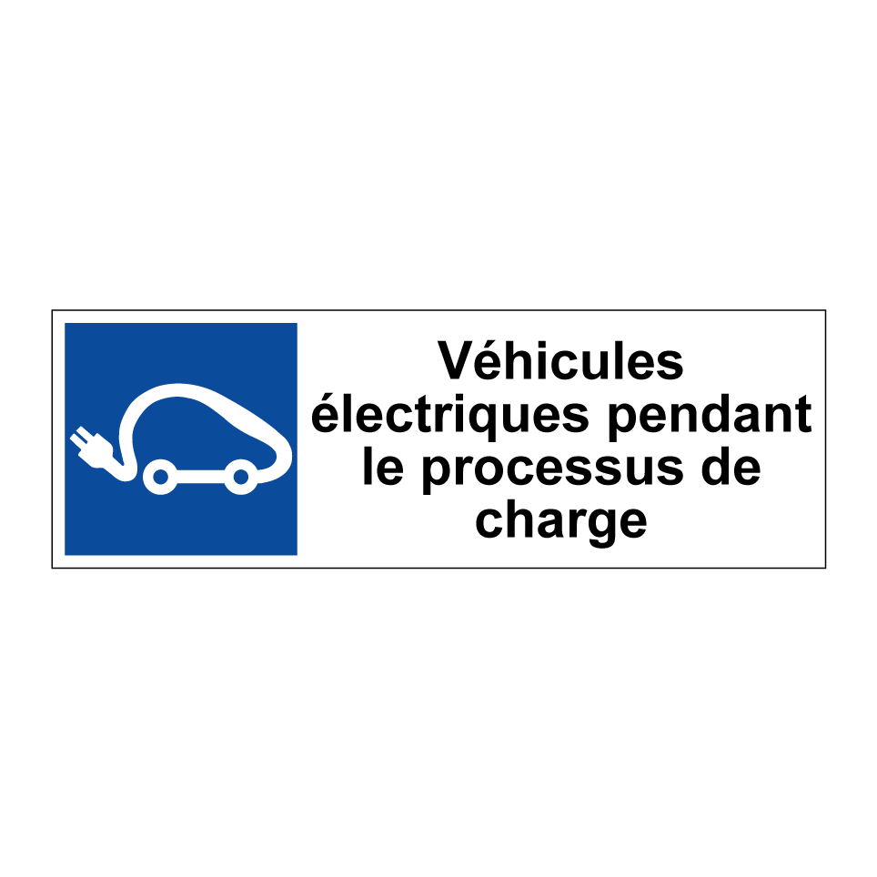 Panneau de stationnement avec le texte : "Véhicules électriques pendant le processus de charge" et une symbolique claire.