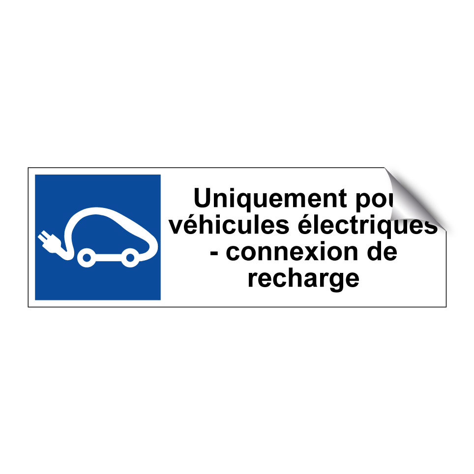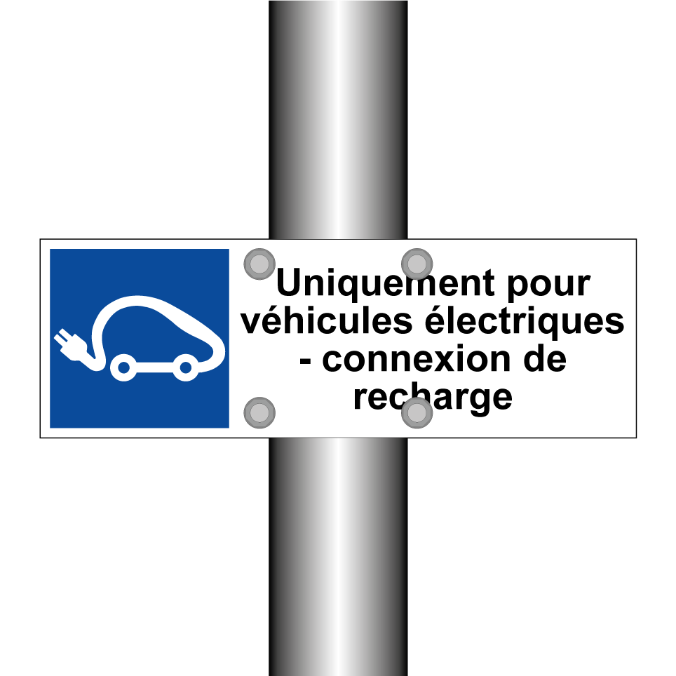 Panneau de stationnement avec le texte : "Uniquement pour véhicules électriques - connexion de recharge" et une symbolique claire.
