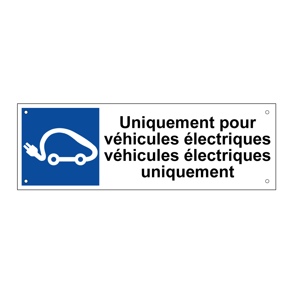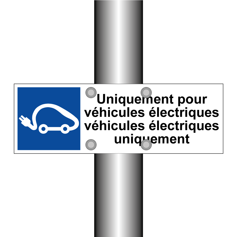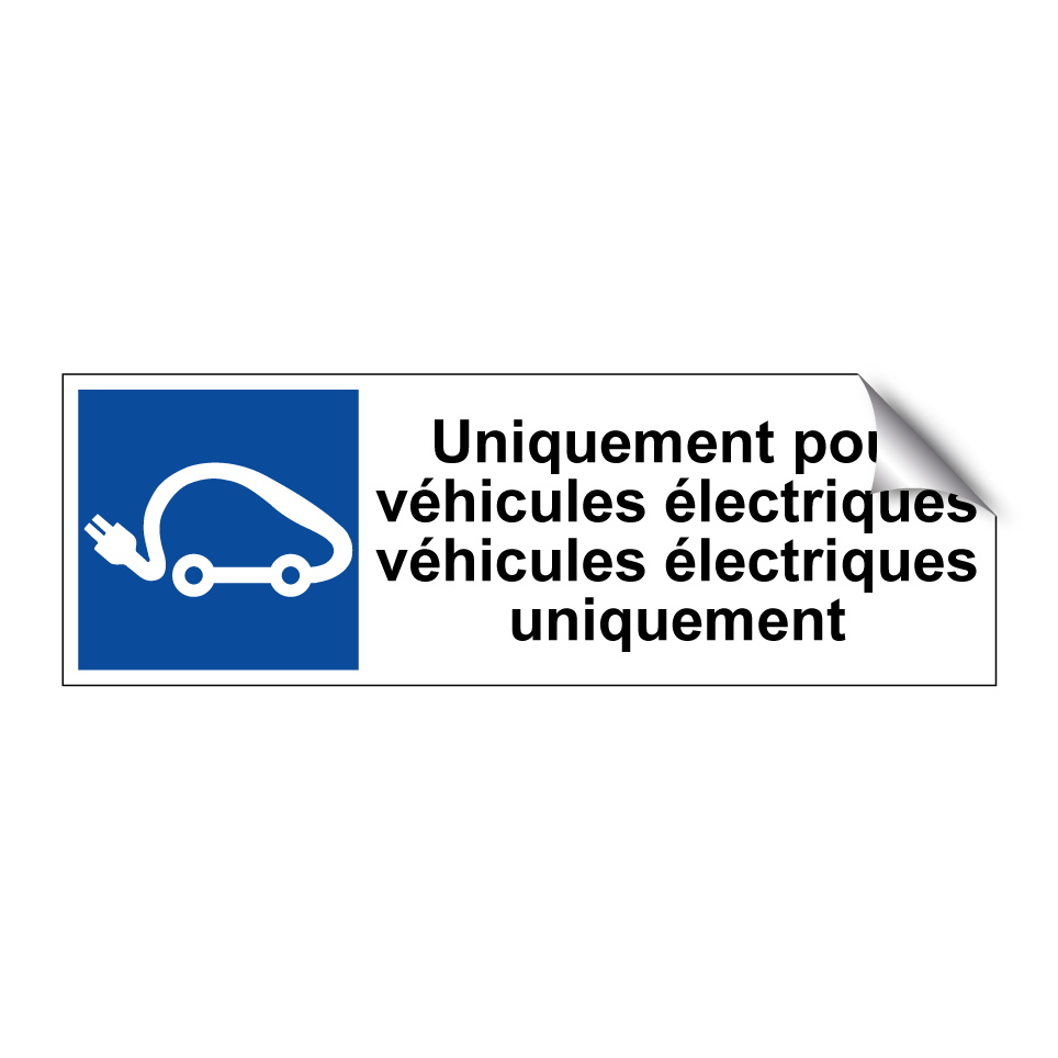 Panneau de stationnement avec le texte : "Uniquement pour véhicules électriques véhicules électriques uniquement" et une symbolique claire.