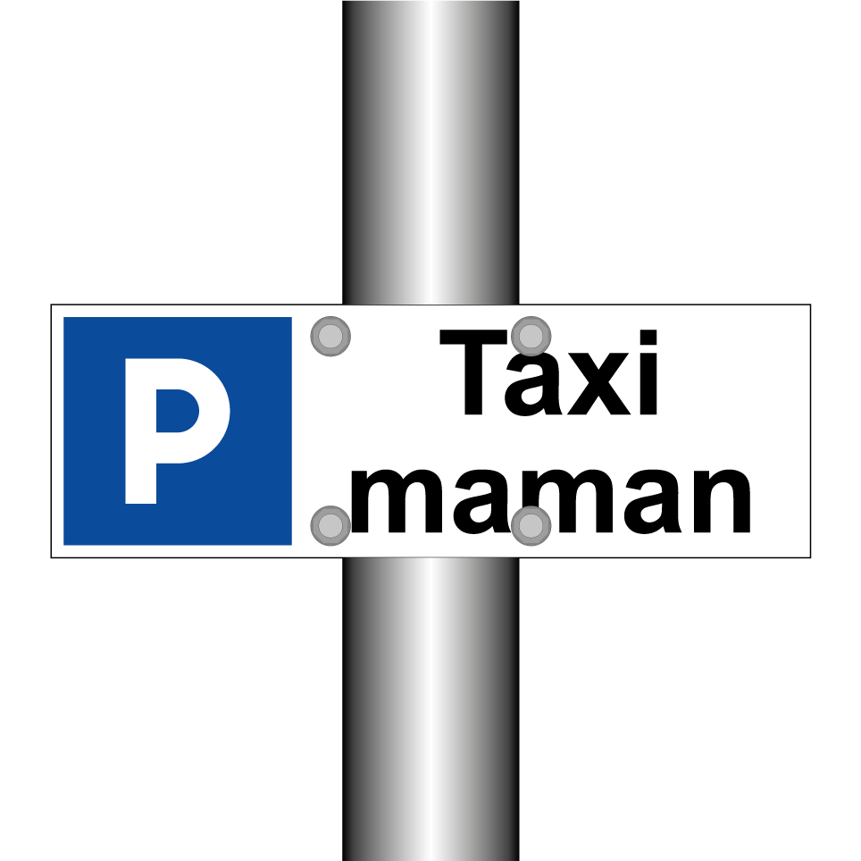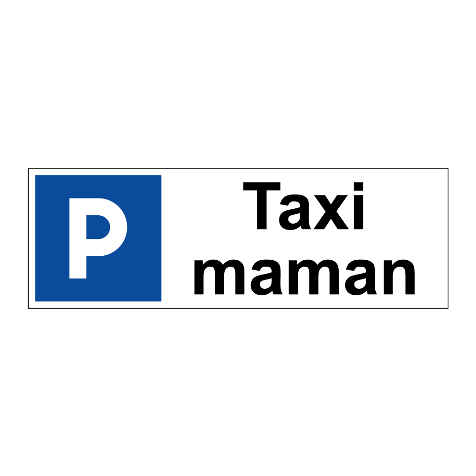 Panneau de stationnement avec le texte : "Taxi maman" et une symbolique claire.