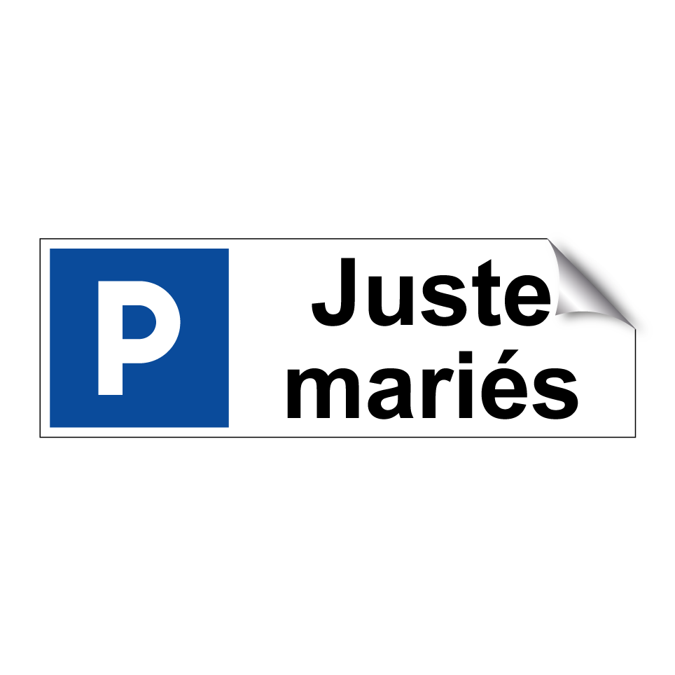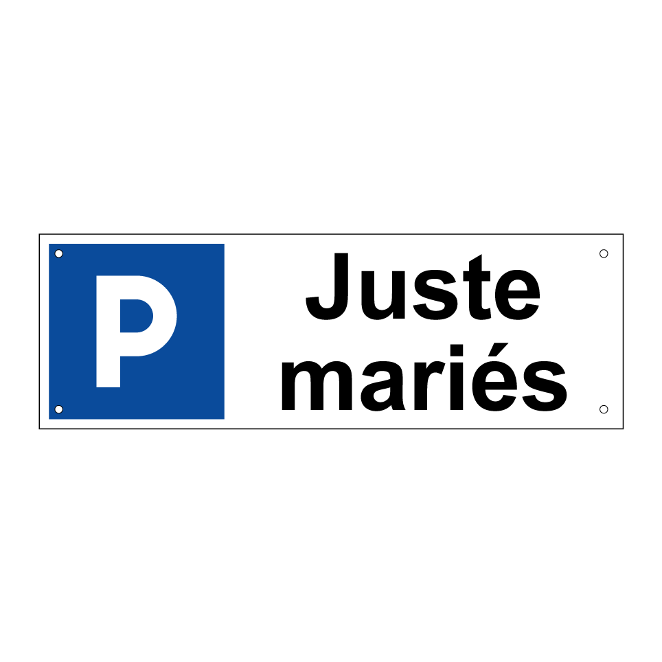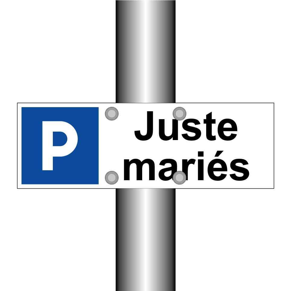 Panneau de stationnement avec le texte : "Juste mariés" et une symbolique claire.