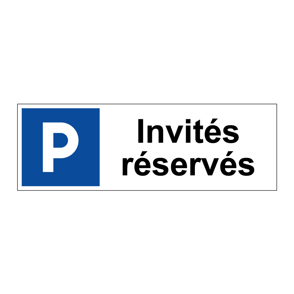 Panneau de stationnement avec le texte : "Invités réservés" et une symbolique claire.