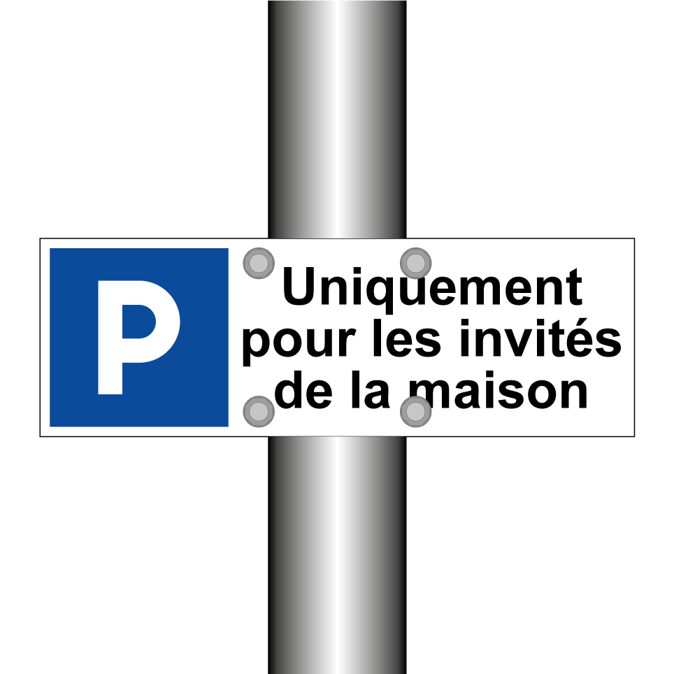 Ce panneau de stationnement est idéal pour délimiter les espaces réservés aux visiteurs de votre résidence. Parfait pour les parkings privés, il assure que seuls les invités de la maison peuvent se garer. Avec son design clair et sa symbolique explicite, ce panneau peut être installé à l'entrée de votre propriété ou à proximité des zones de stationnement. Sa visibilité garantit une communication efficace et prévient les stationnements non autorisés.