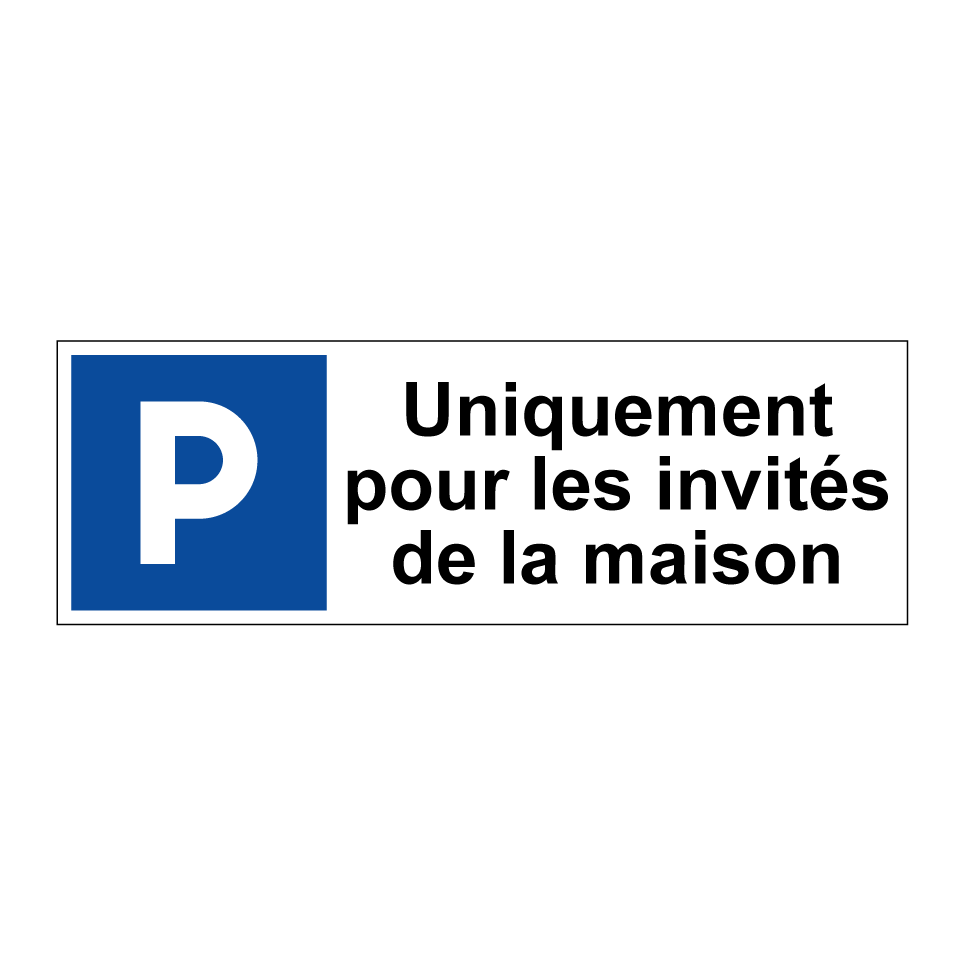 Panneau de stationnement avec le texte : "Uniquement pour les invités de la maison" et une symbolique claire.