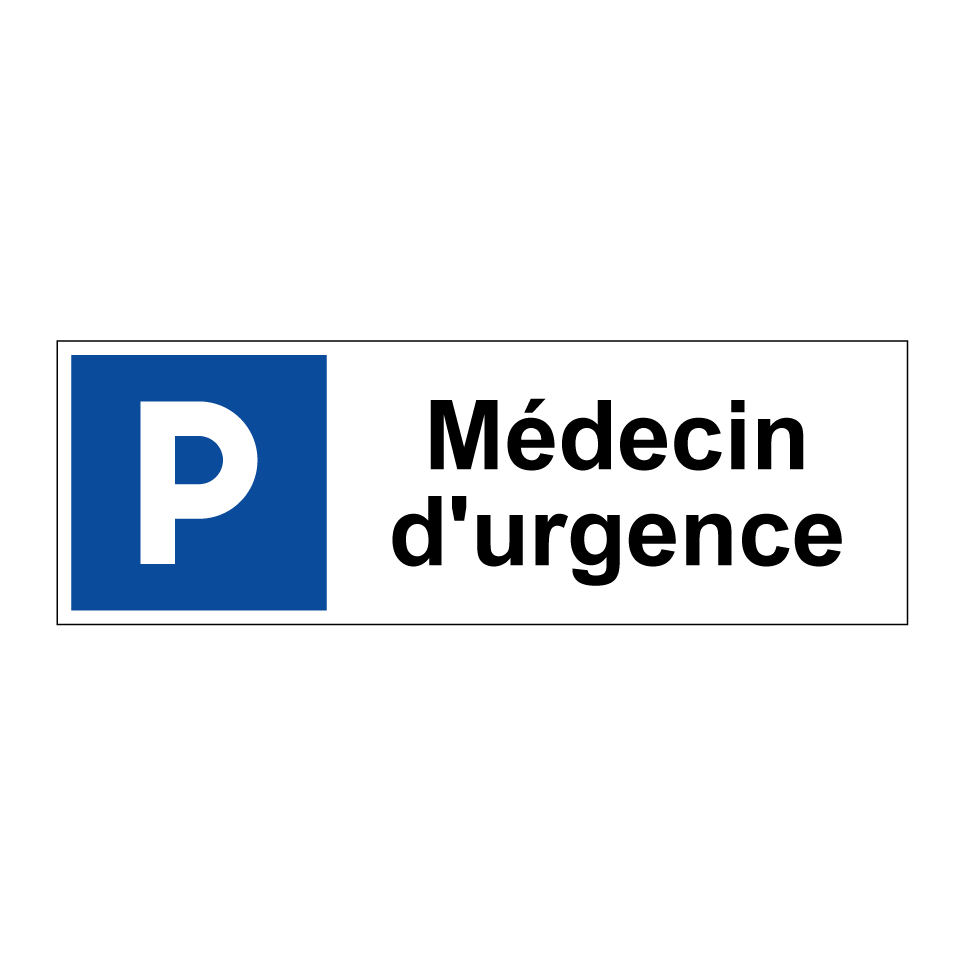 Panneau de stationnement avec le texte : "Médecin d'urgence" et une symbolique claire.