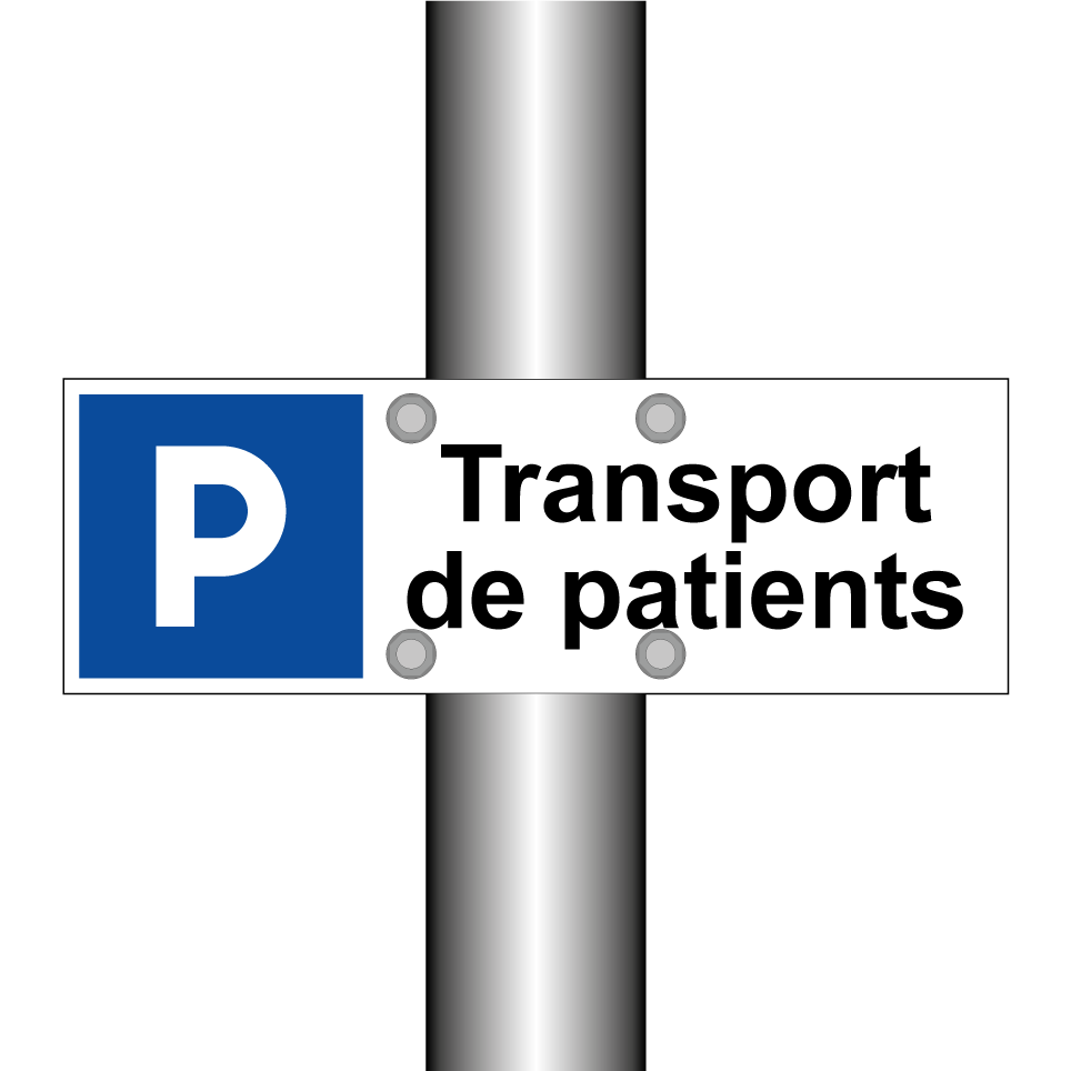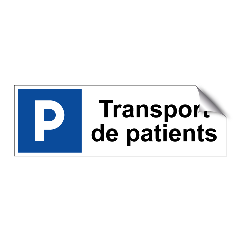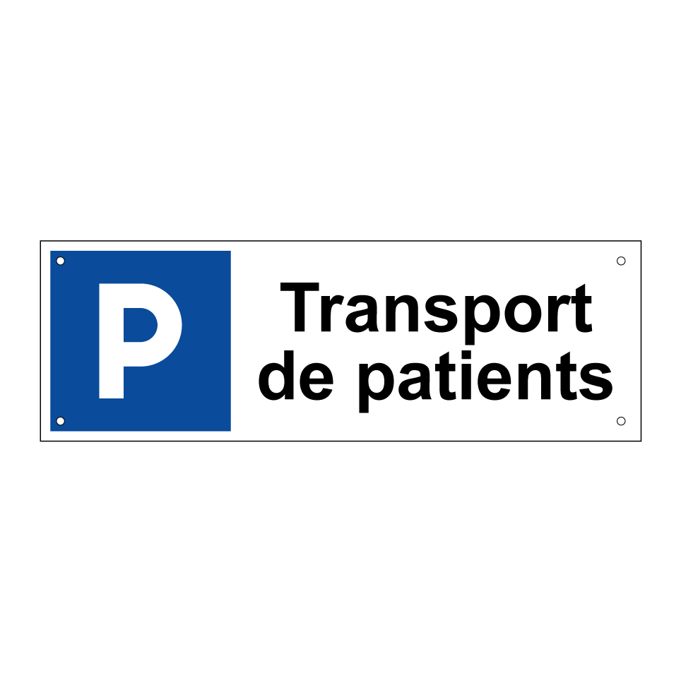 Panneau de stationnement avec le texte : "Transport de patients" et une symbolique claire.