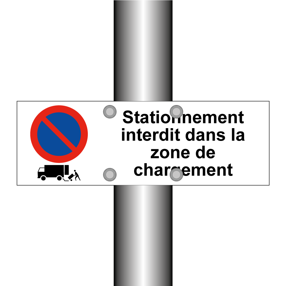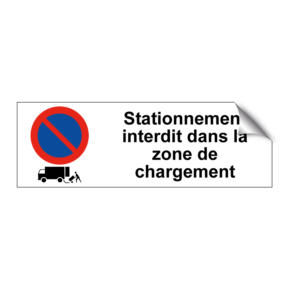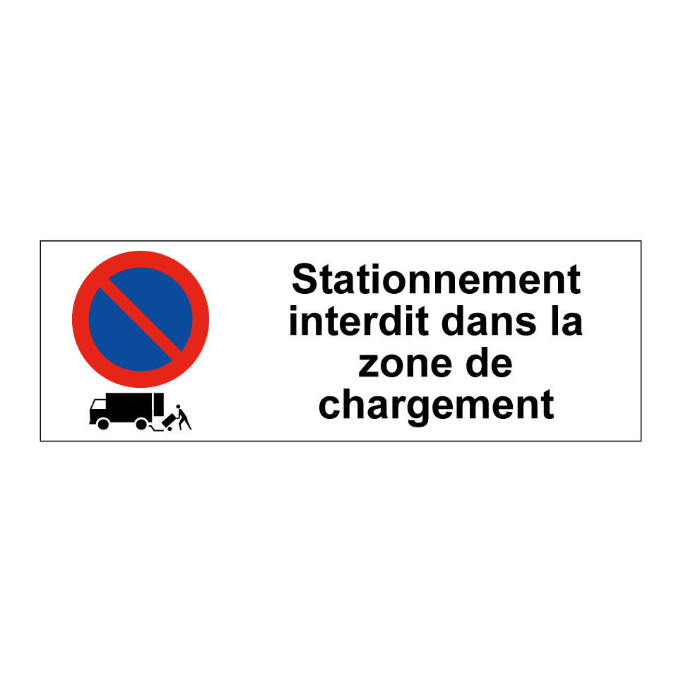 Panneau d'interdiction de stationner avec le texte : "Stationnement interdit dans la zone de chargement" et une symbolique claire.
