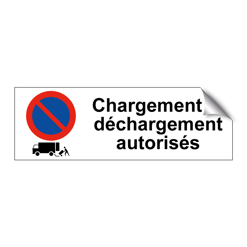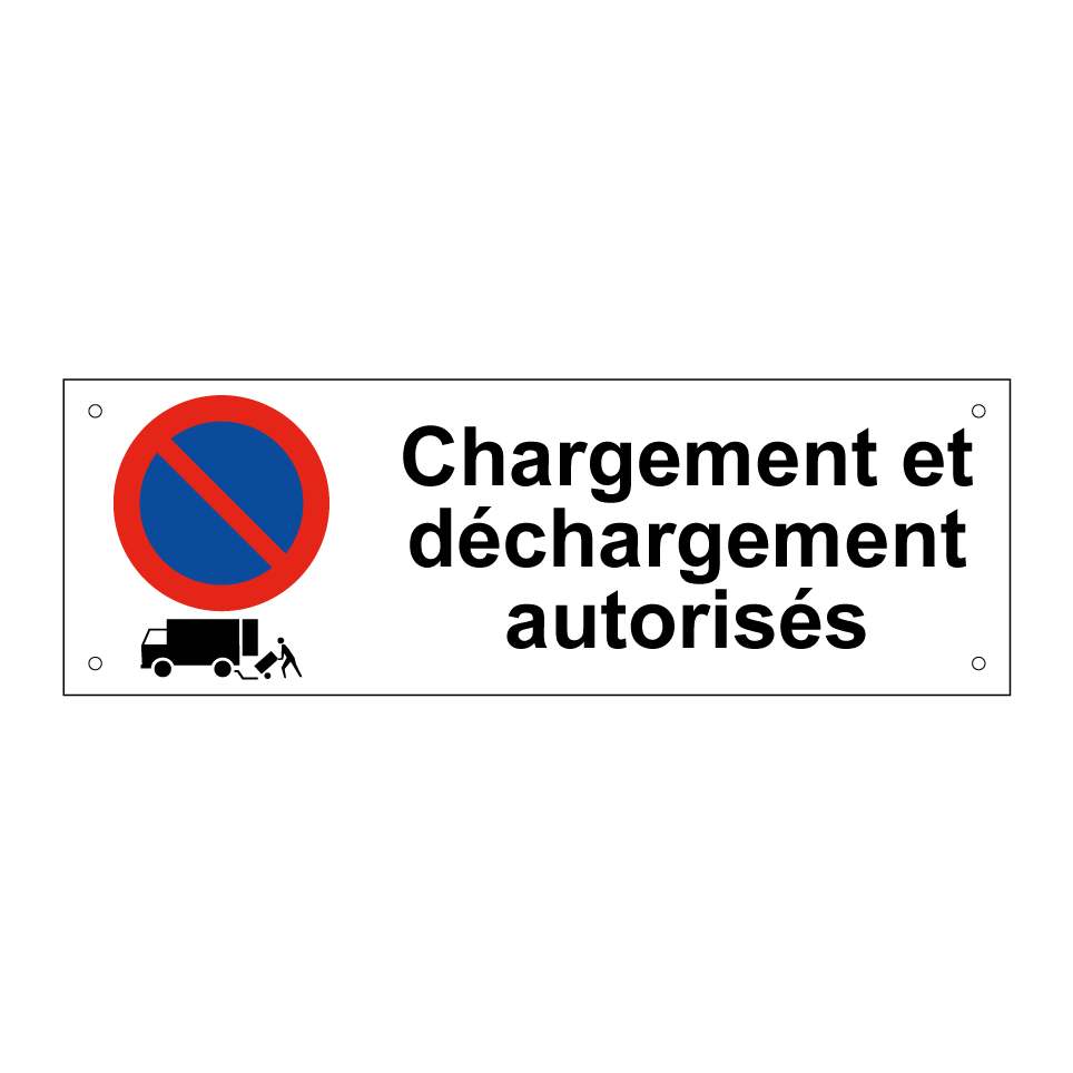 Panneau d'interdiction de stationner avec le texte : "Chargement et déchargement autorisés" et une symbolique claire.