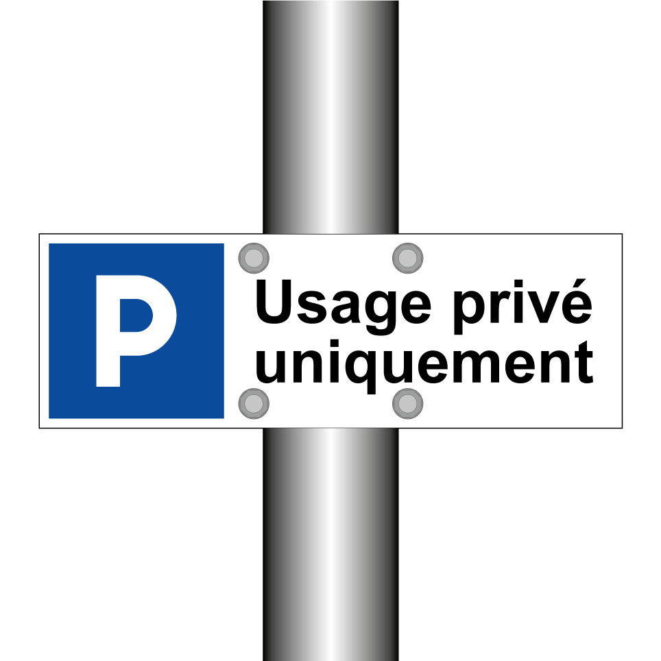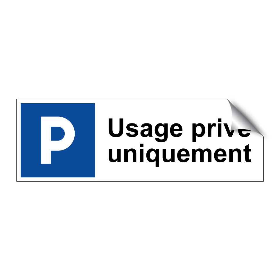 Panneau de stationnement avec le texte : "Usage privé uniquement" et une symbolique claire.