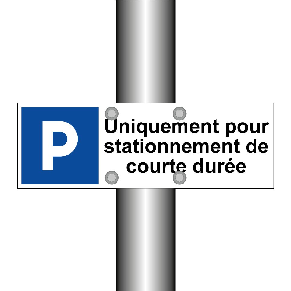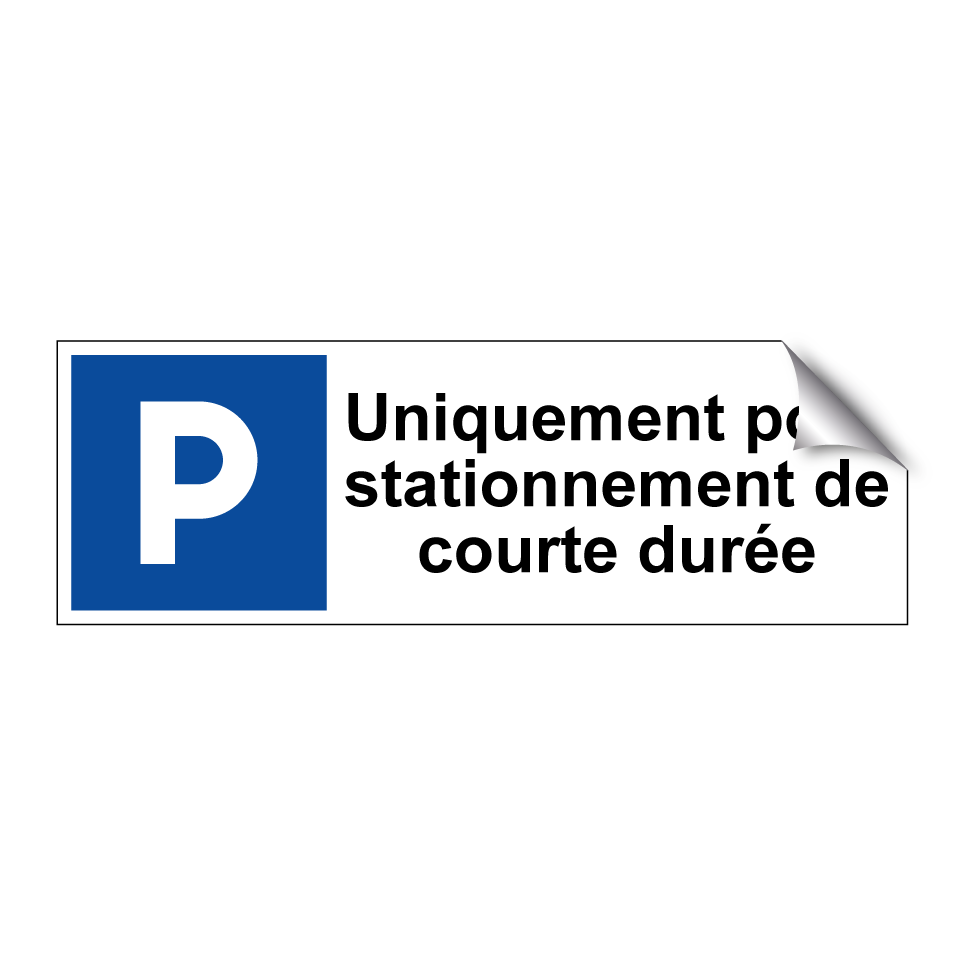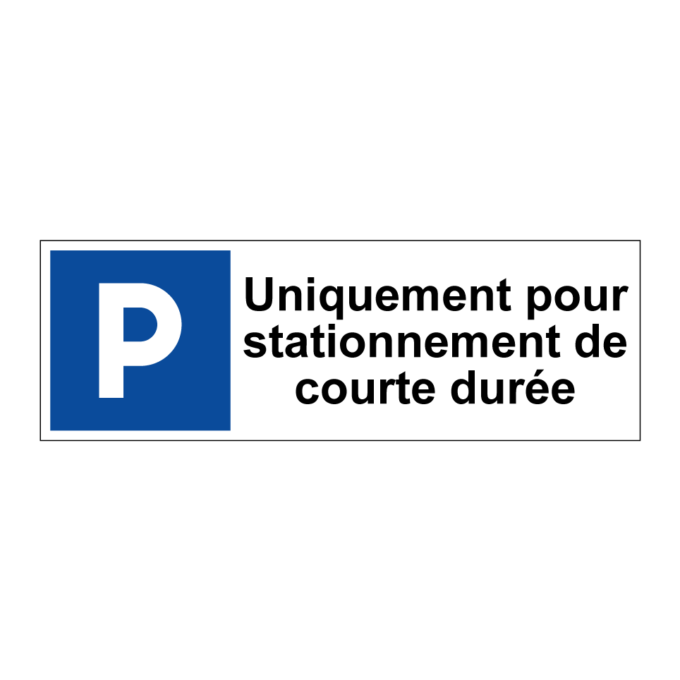 Panneau de stationnement avec le texte : "Uniquement pour stationnement de courte durée" et une symbolique claire.