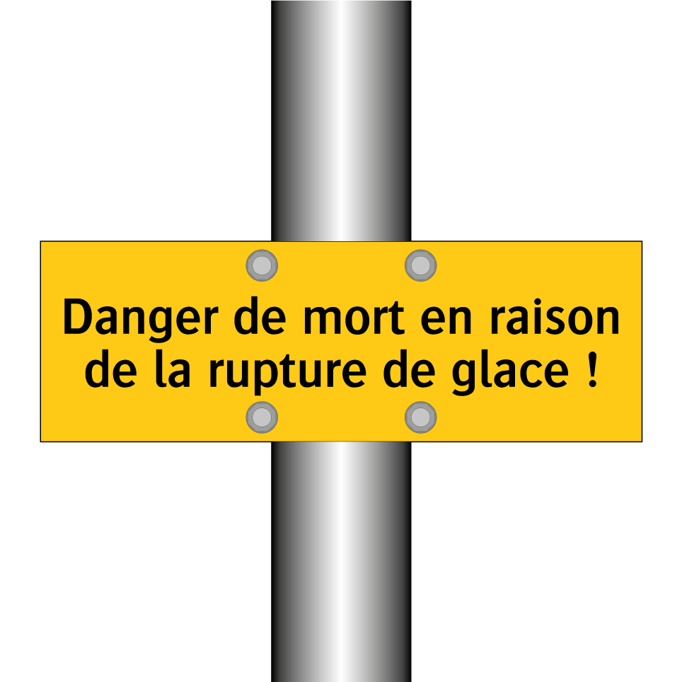 Panneau d'avertissement avec le texte : "Danger de mort en raison de la rupture de glace !"
