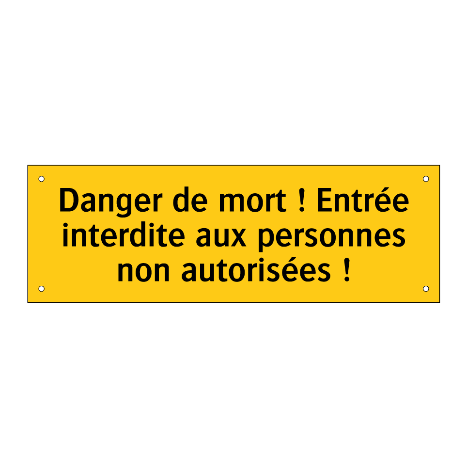 Panneau d'avertissement avec le texte : "Danger de mort ! Entrée interdite aux personnes non autorisées !"