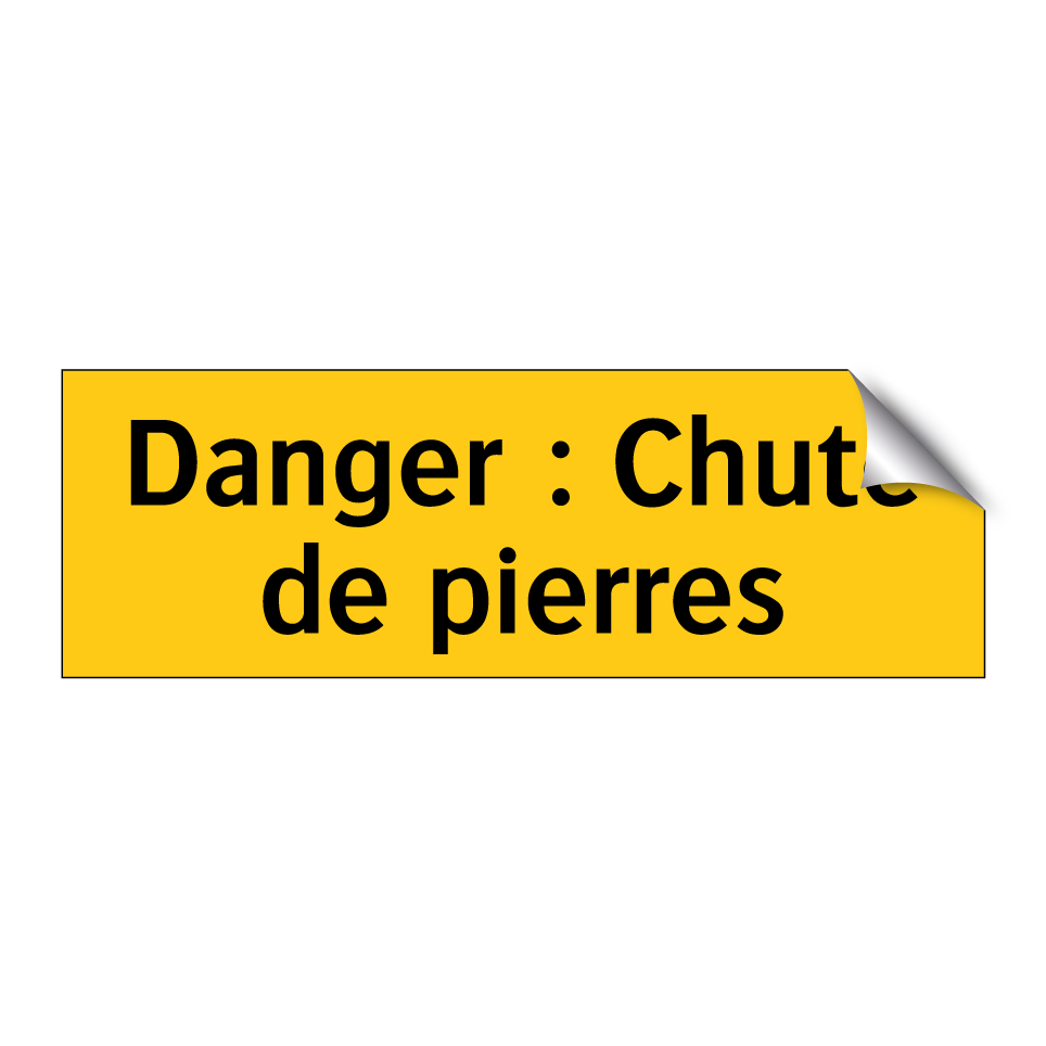 Panneau d'avertissement avec le texte : "Danger : Chute de pierres"