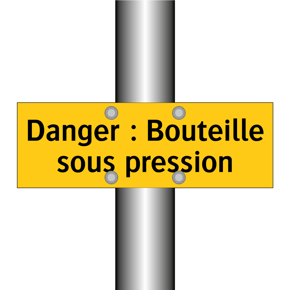 Panneau d'avertissement avec le texte : "Danger : Bouteille sous pression"