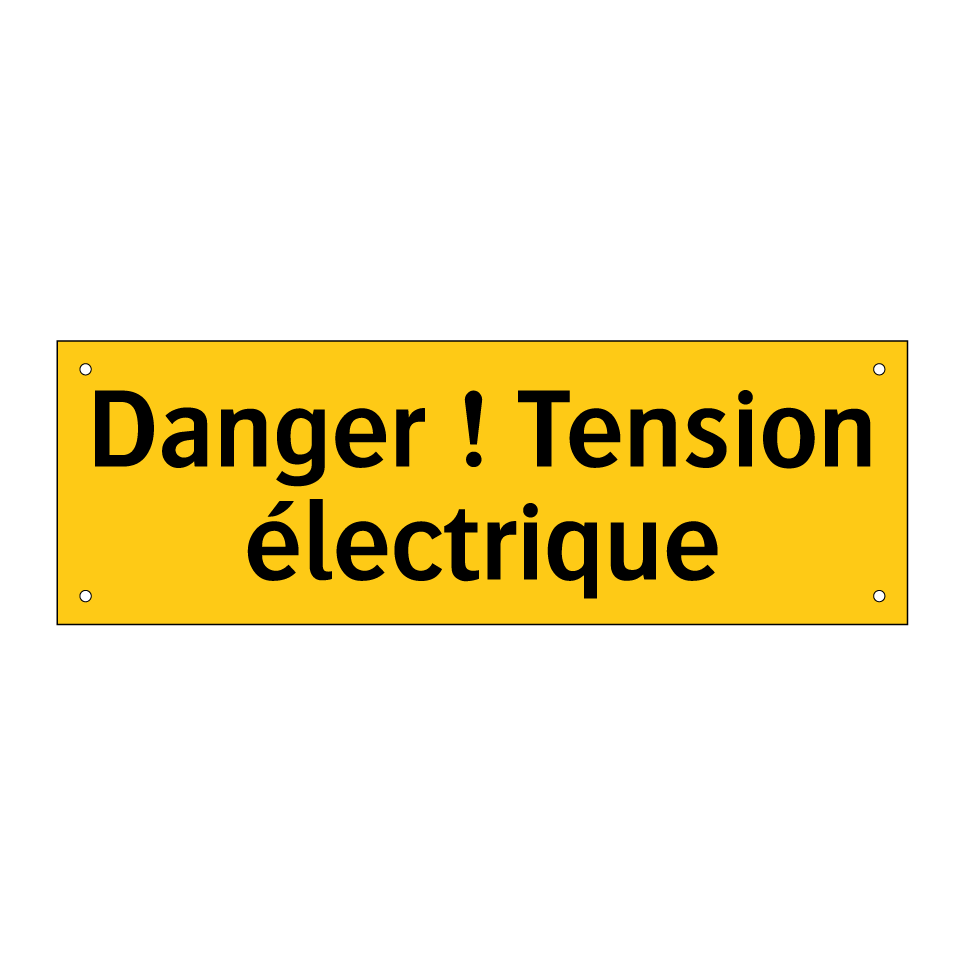 Panneau d'avertissement avec le texte : "Danger ! Tension électrique"