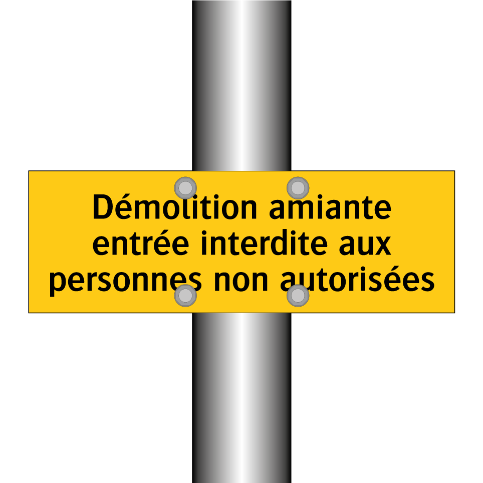 Panneau d'avertissement avec le texte : "Démolition amiante entrée interdite aux personnes non autorisées"