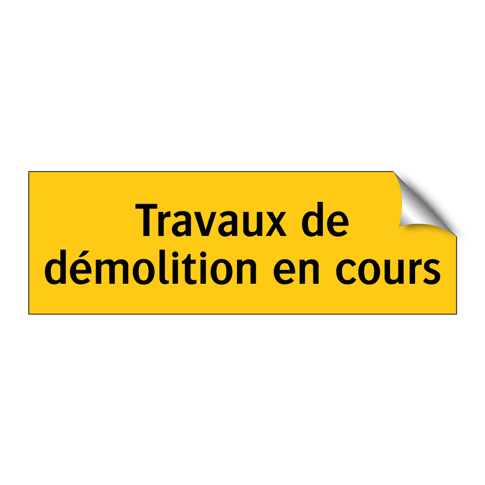 Panneau d'avertissement avec le texte : "Travaux de démolition en cours"