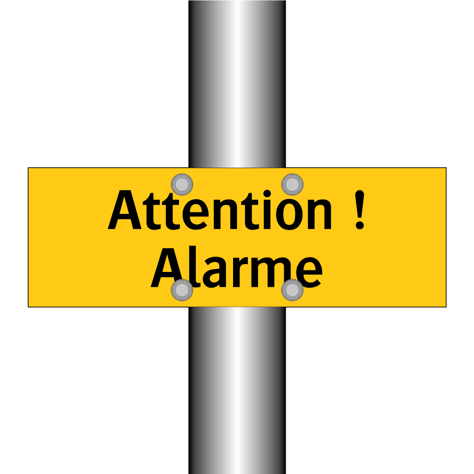 Panneau d'avertissement avec le texte : "Attention ! Alarme"