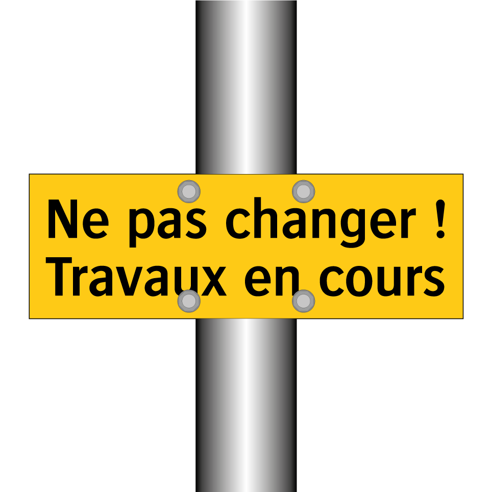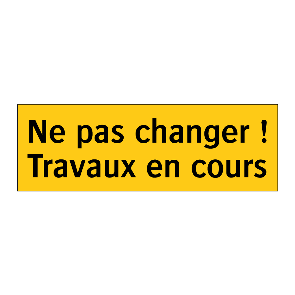 Panneau d'avertissement avec le texte : "Ne pas changer ! Travaux en cours"