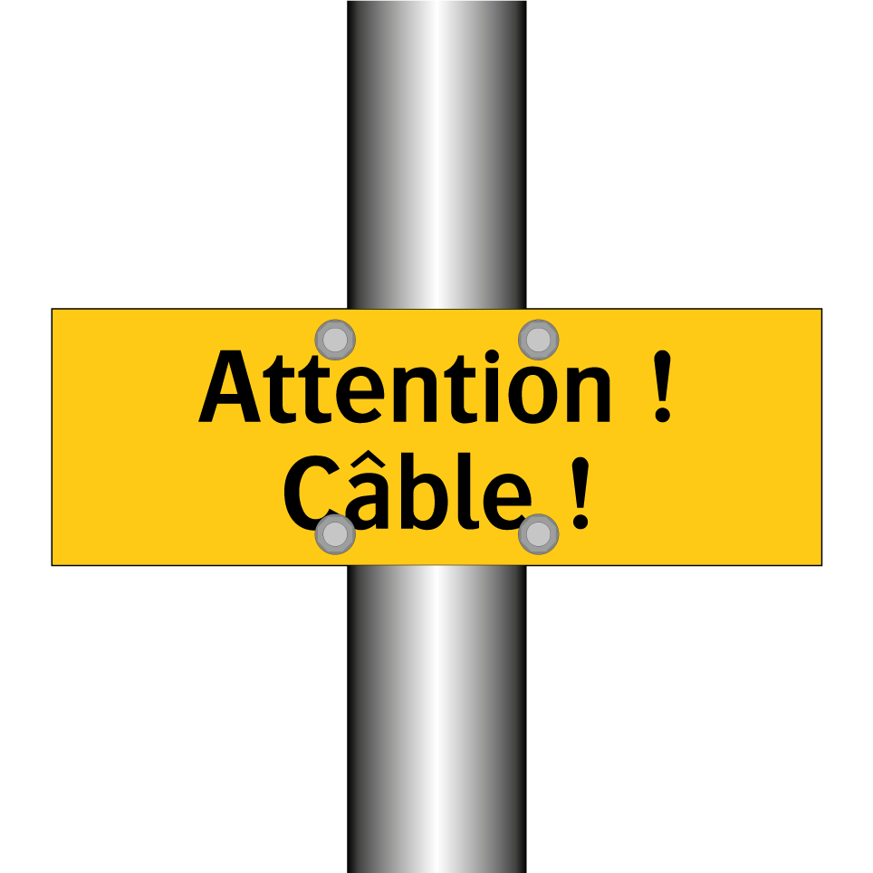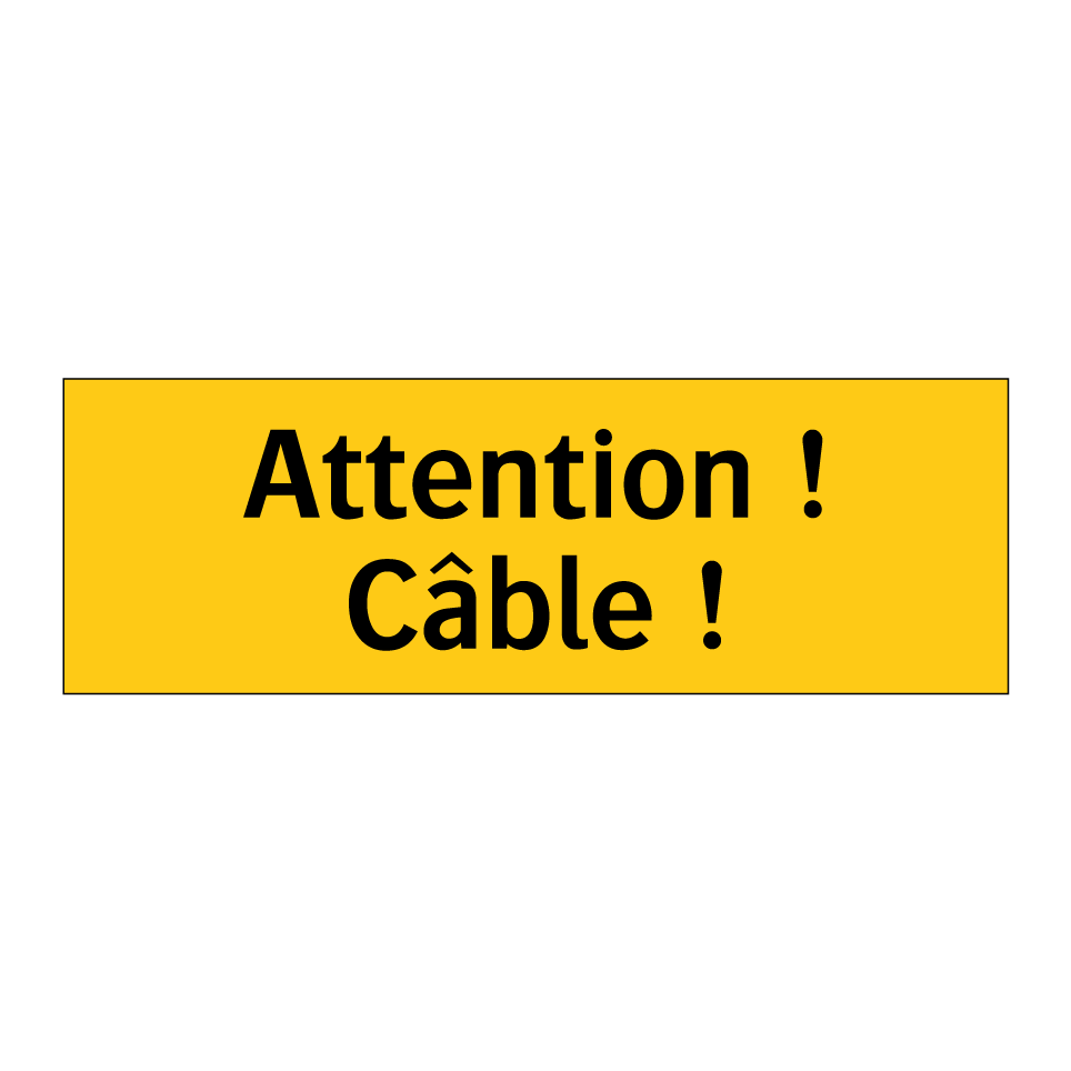 Panneau d'avertissement avec le texte : "Attention ! Câble !"