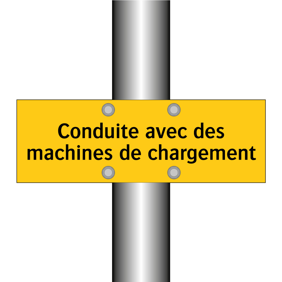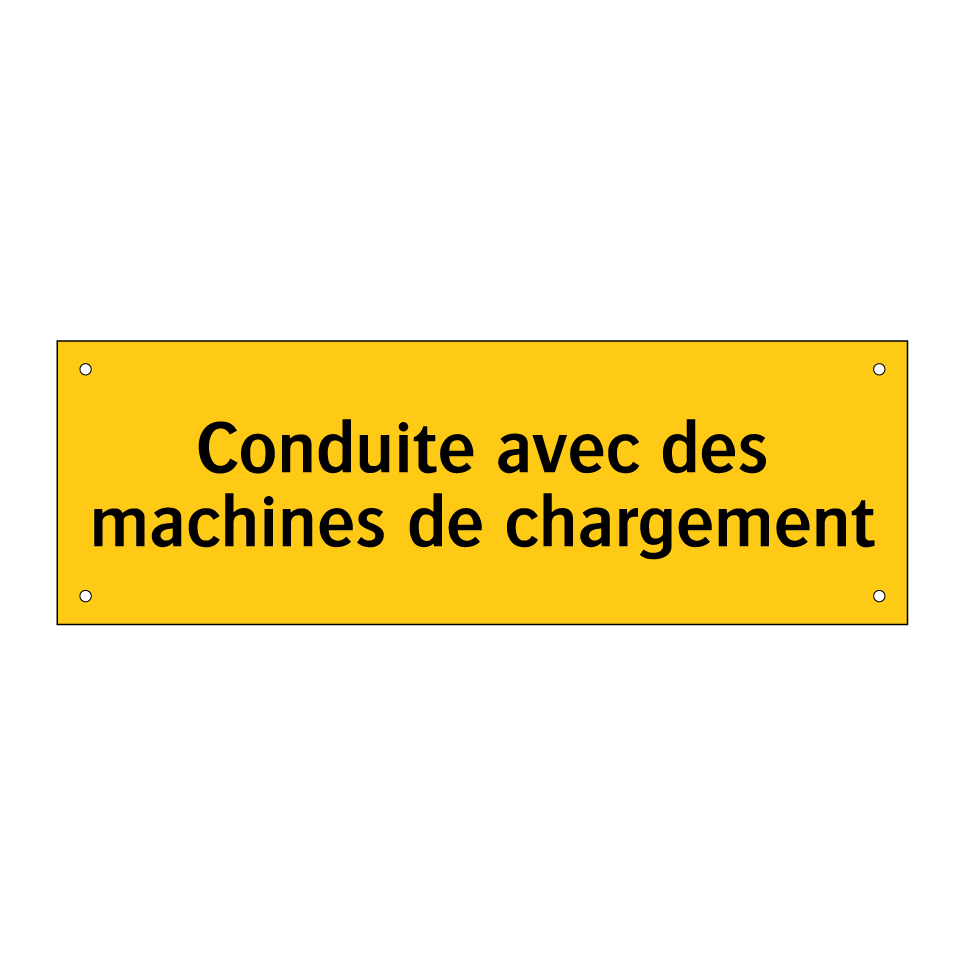 Panneau d'avertissement avec le texte : "Conduite avec des machines de chargement"