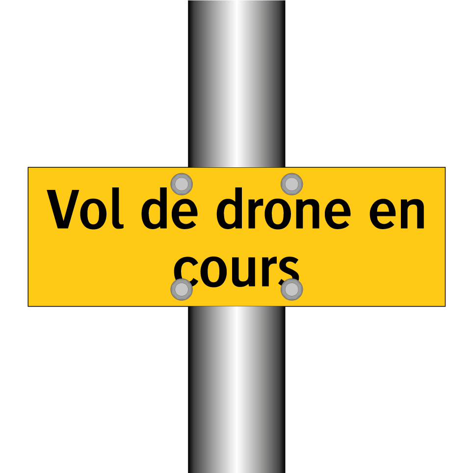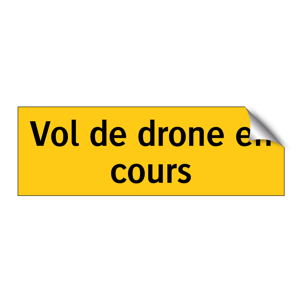 Panneau d'avertissement avec le texte : "Vol de drone en cours"