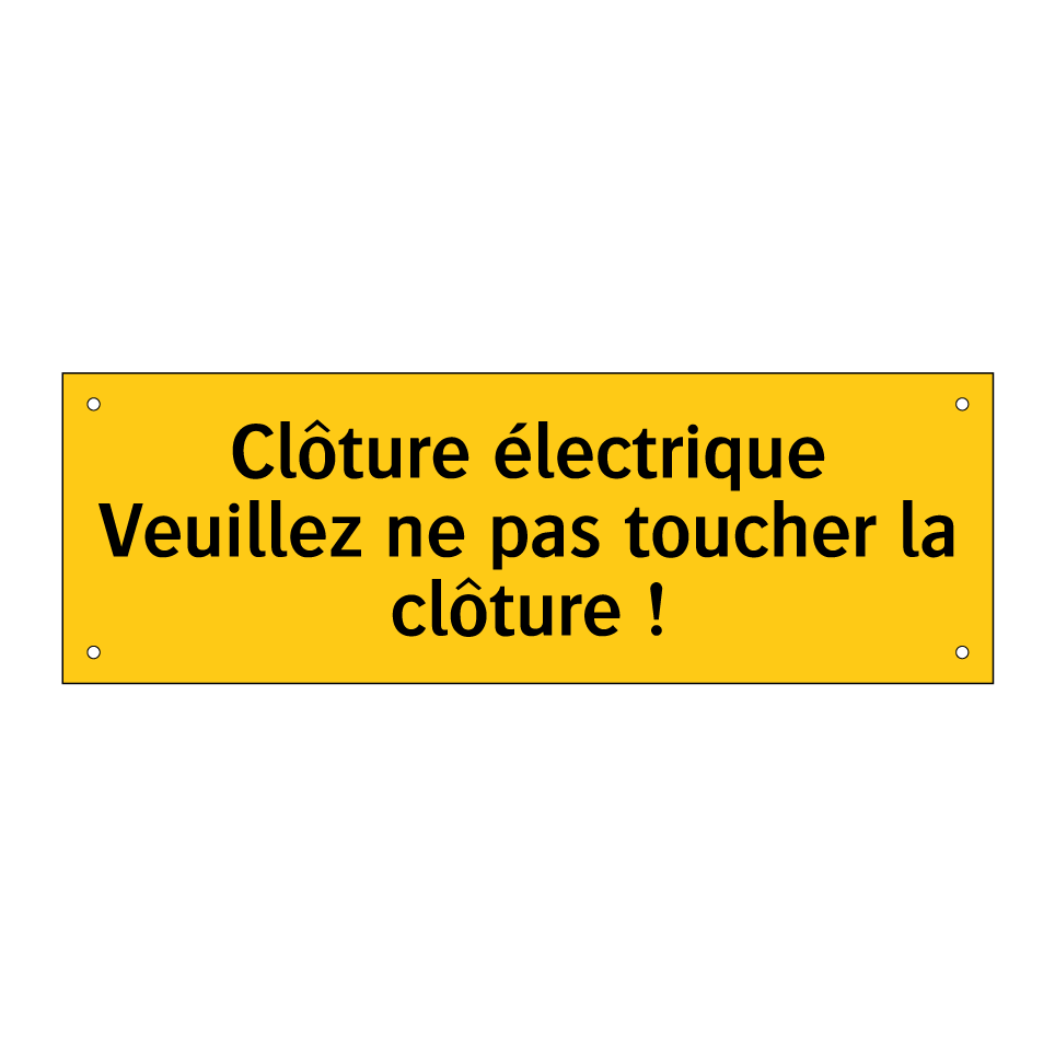 Panneau d'avertissement avec le texte : "Clôture électrique Veuillez ne pas toucher la clôture !"